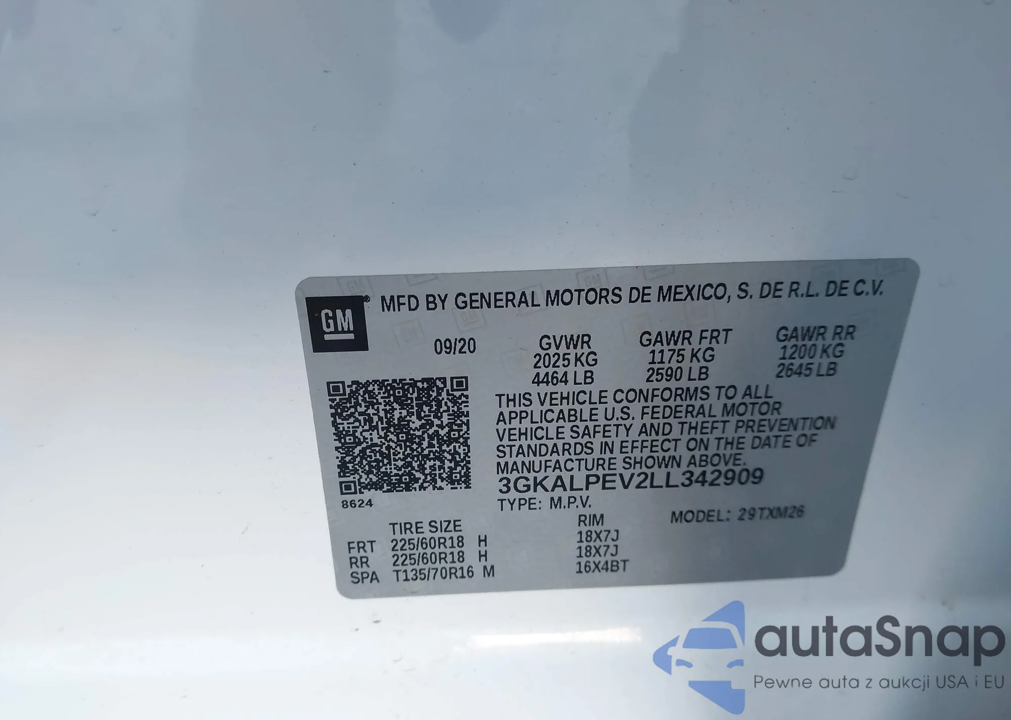 LOT: 43923281 VIN: 3GKALPEV2LL342909