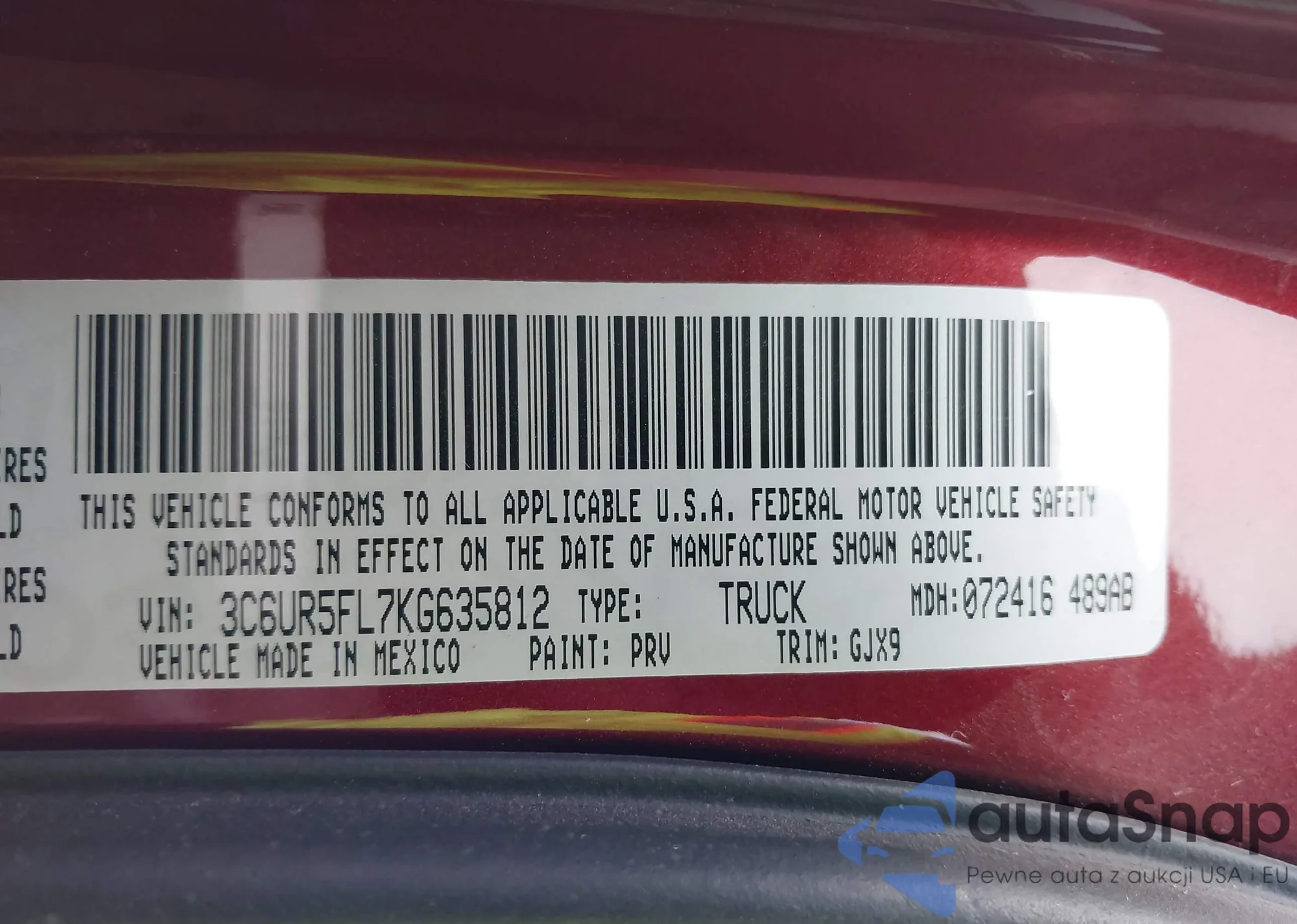 • VIN 3C6UR5FL7KG635812