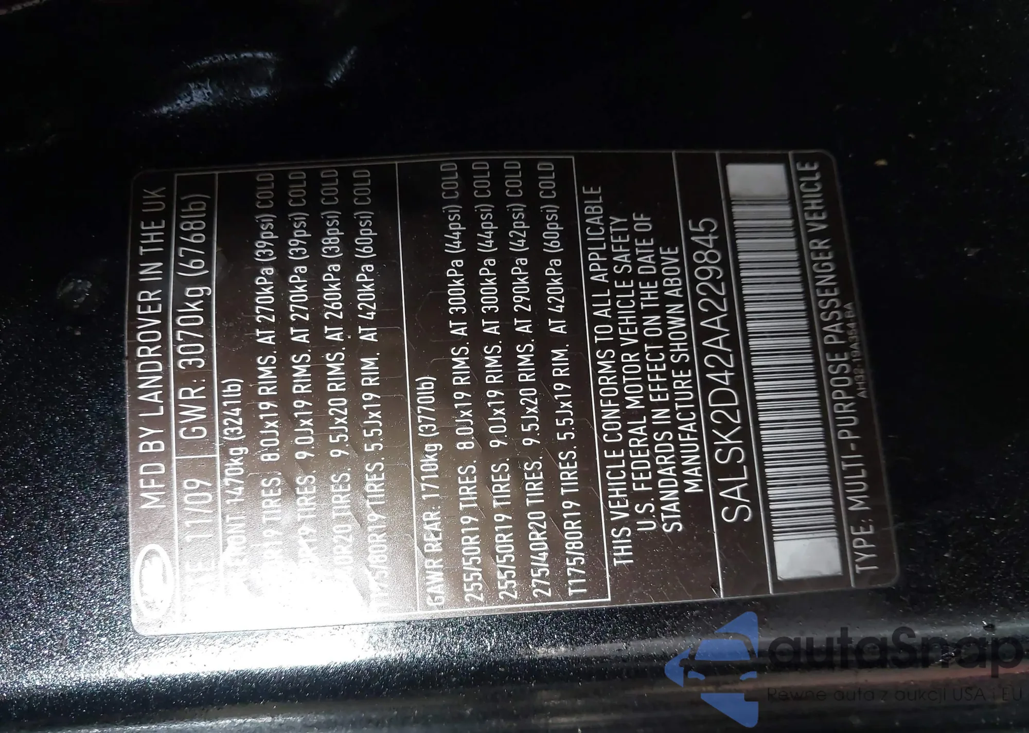 • VIN SALSK2D42AA229845