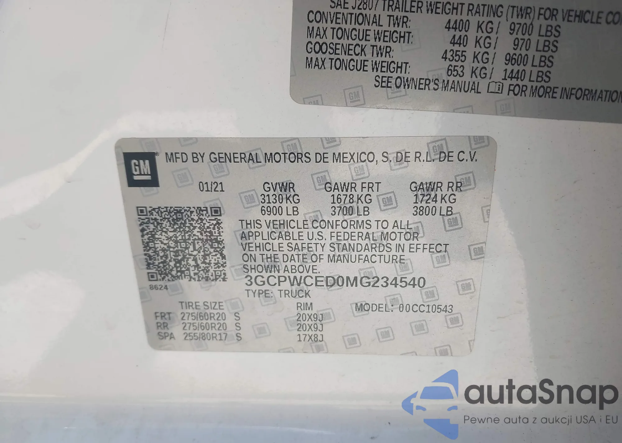 • VIN 3GCPWCED0MG234540