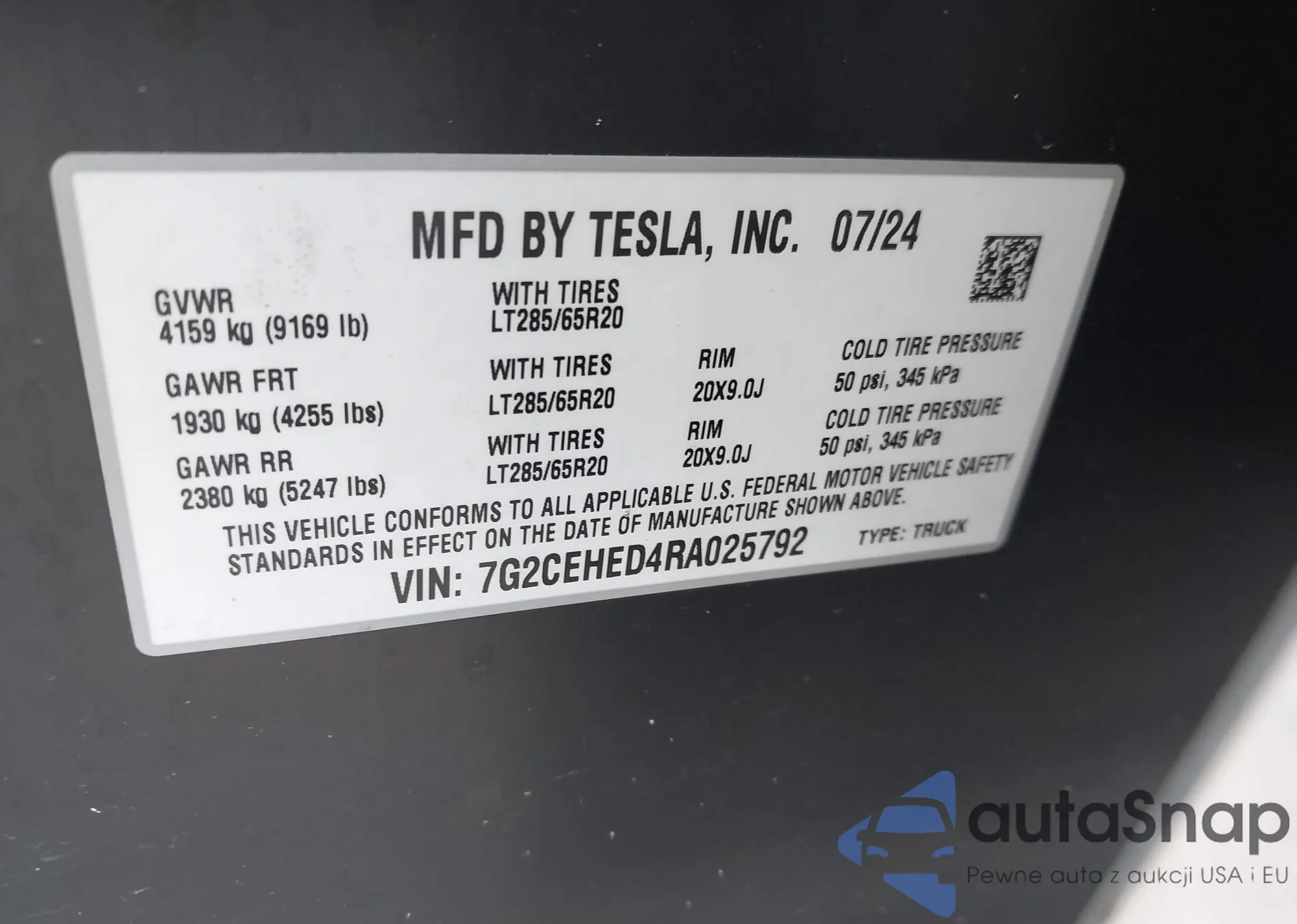 2024 Tesla Cybertruck z USA, uszkodzony, nr VIN 7G2CEHED4RA025792