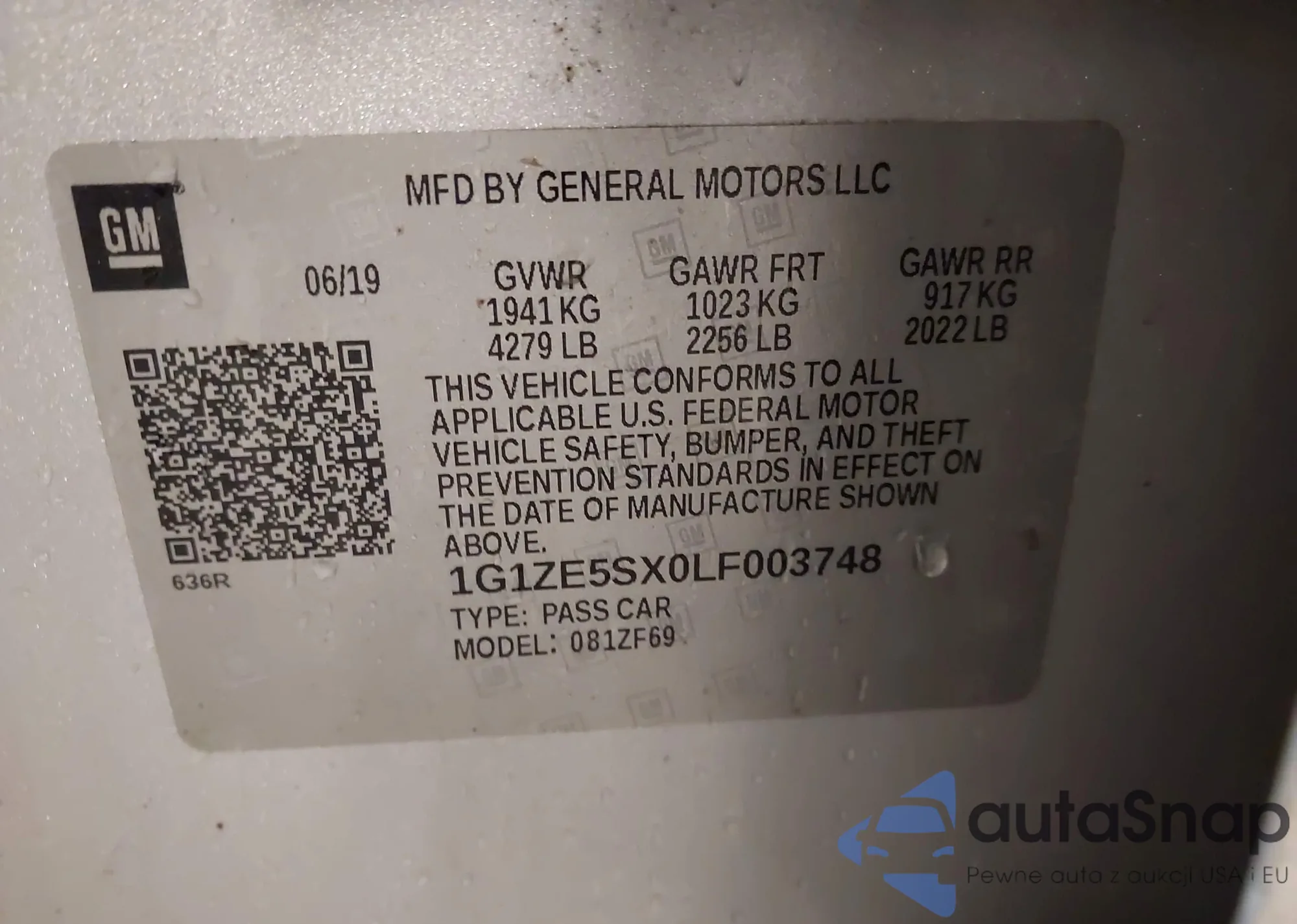 • VIN 1G1ZE5SX0LF003748