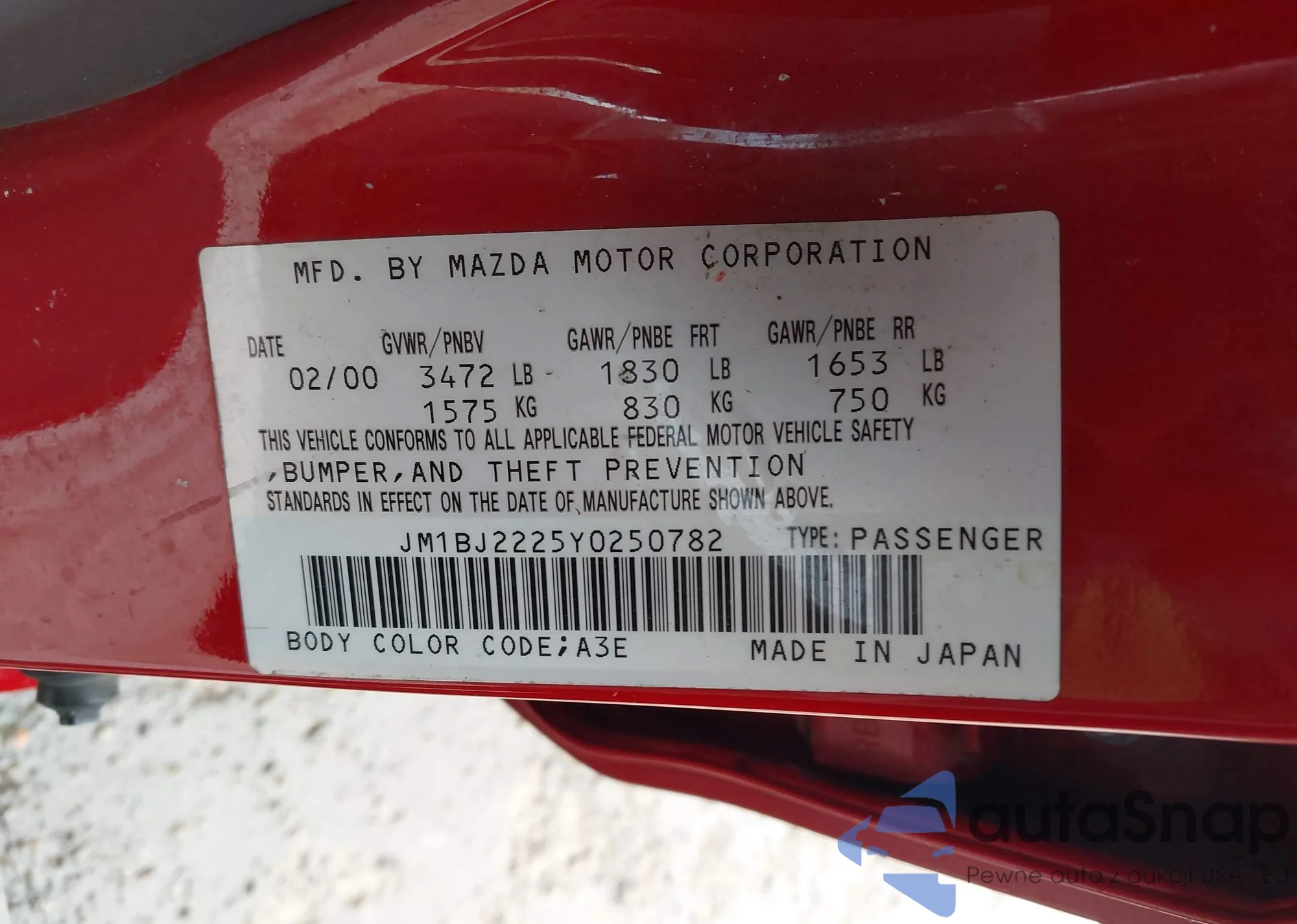 LOT: 43958836 VIN: JM1BJ2225Y0250782