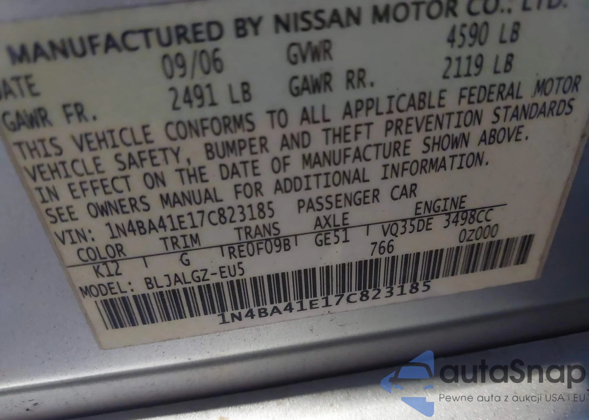 LOT: 43730054 VIN: 1N4BA41E17C823185