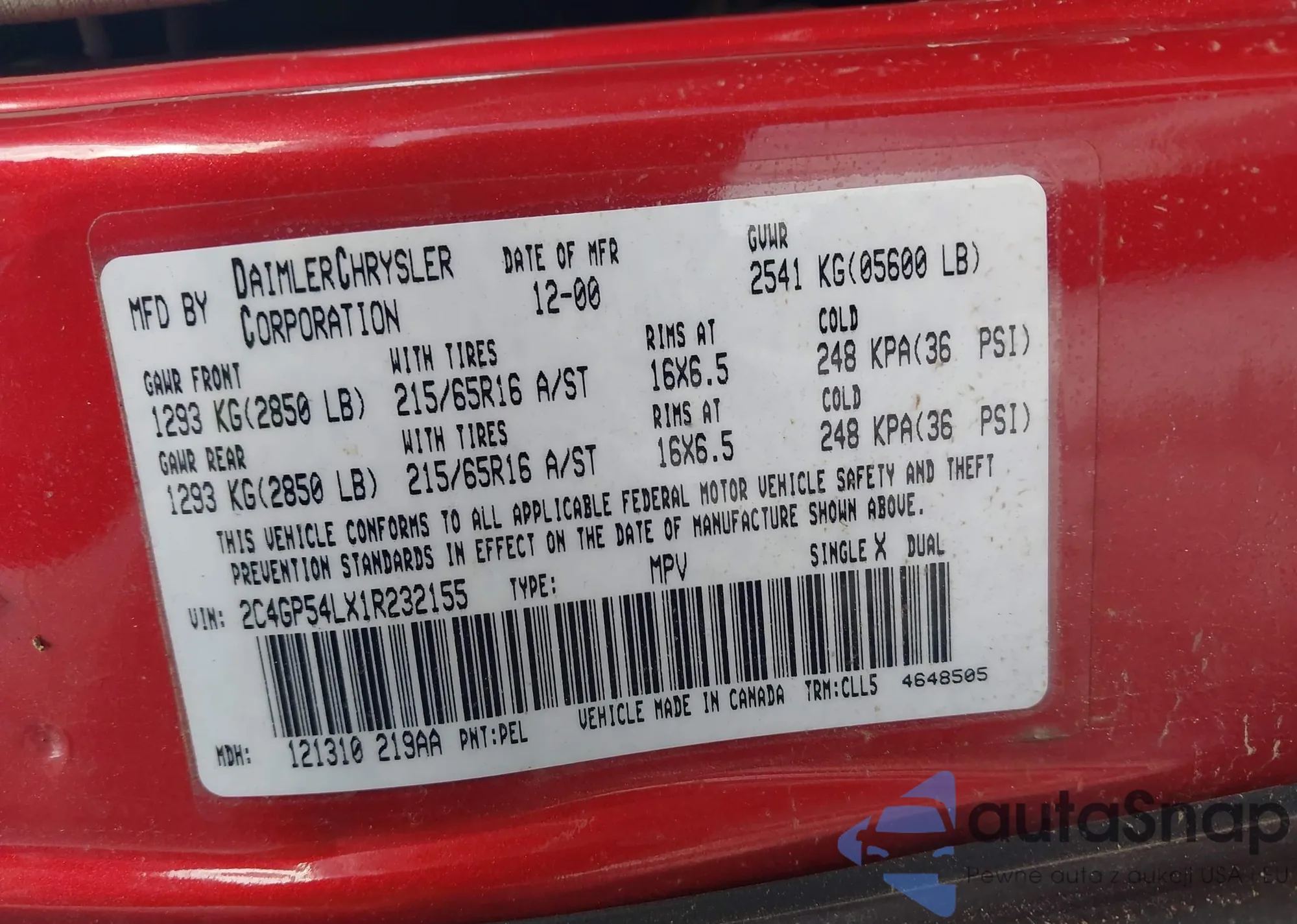 • VIN 2C4GP54LX1R232155