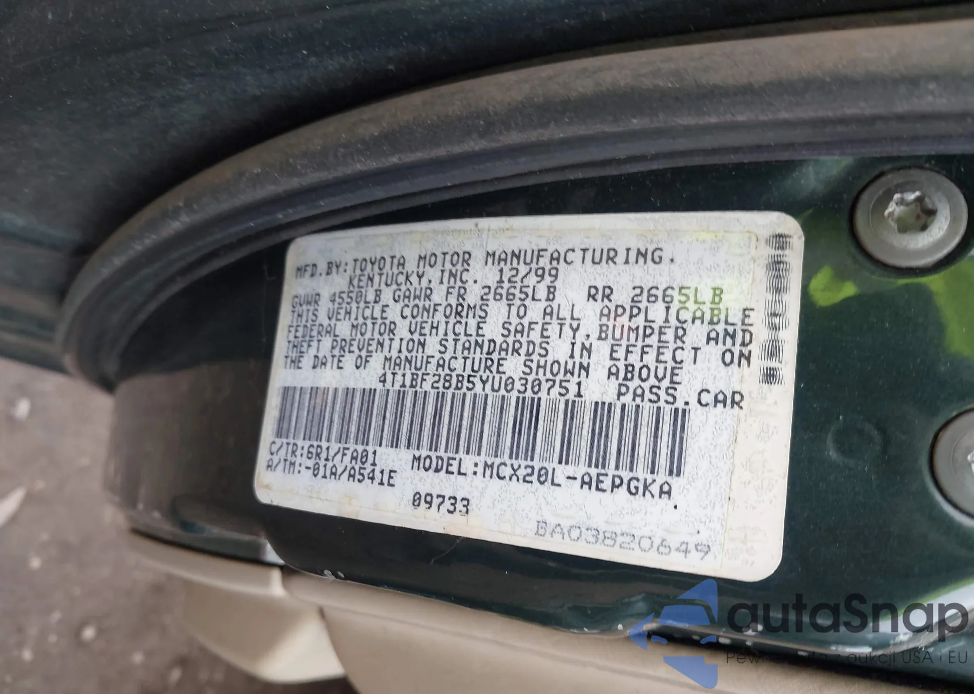 LOT: 43906927 VIN: 4T1BF28B11U158104