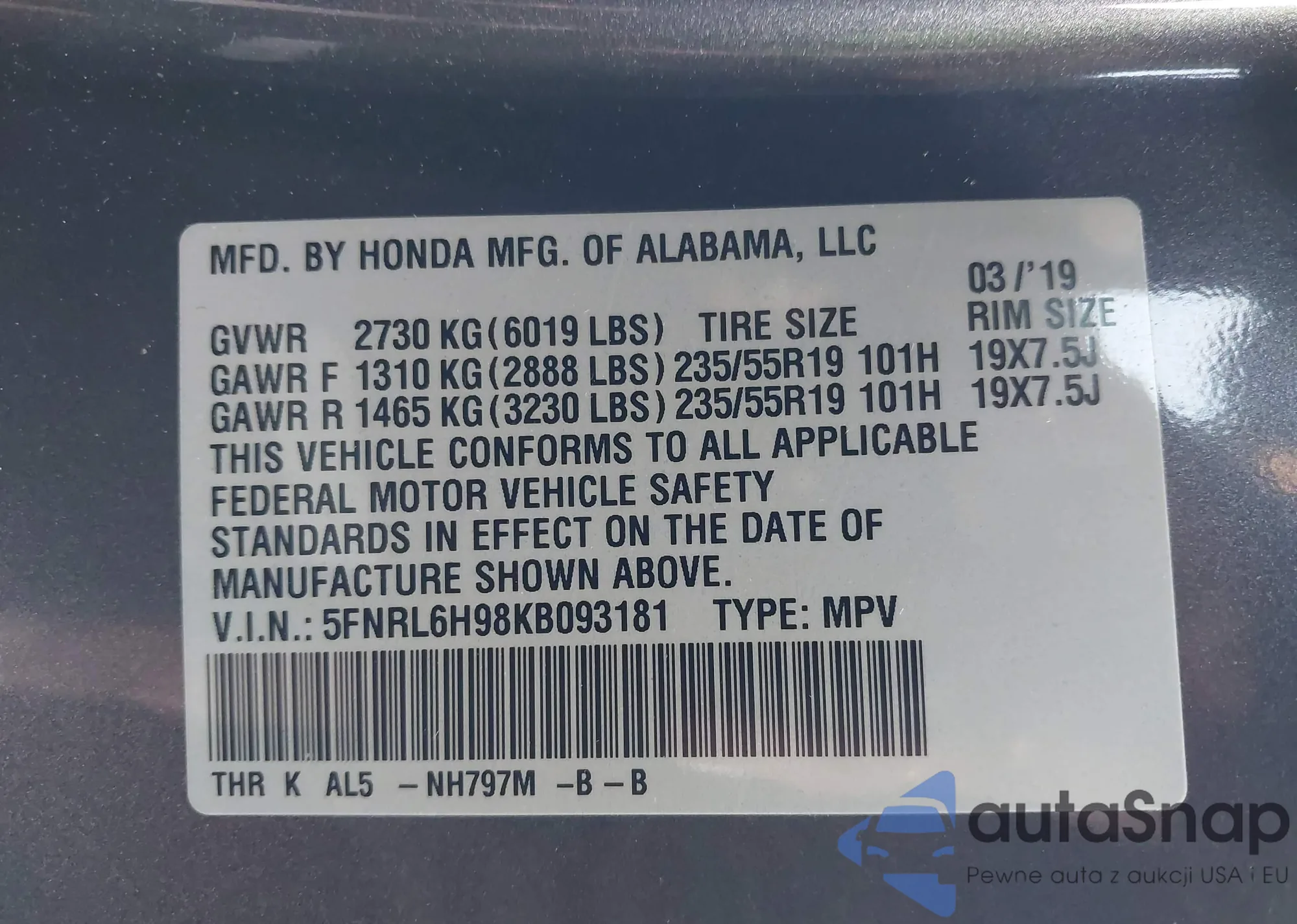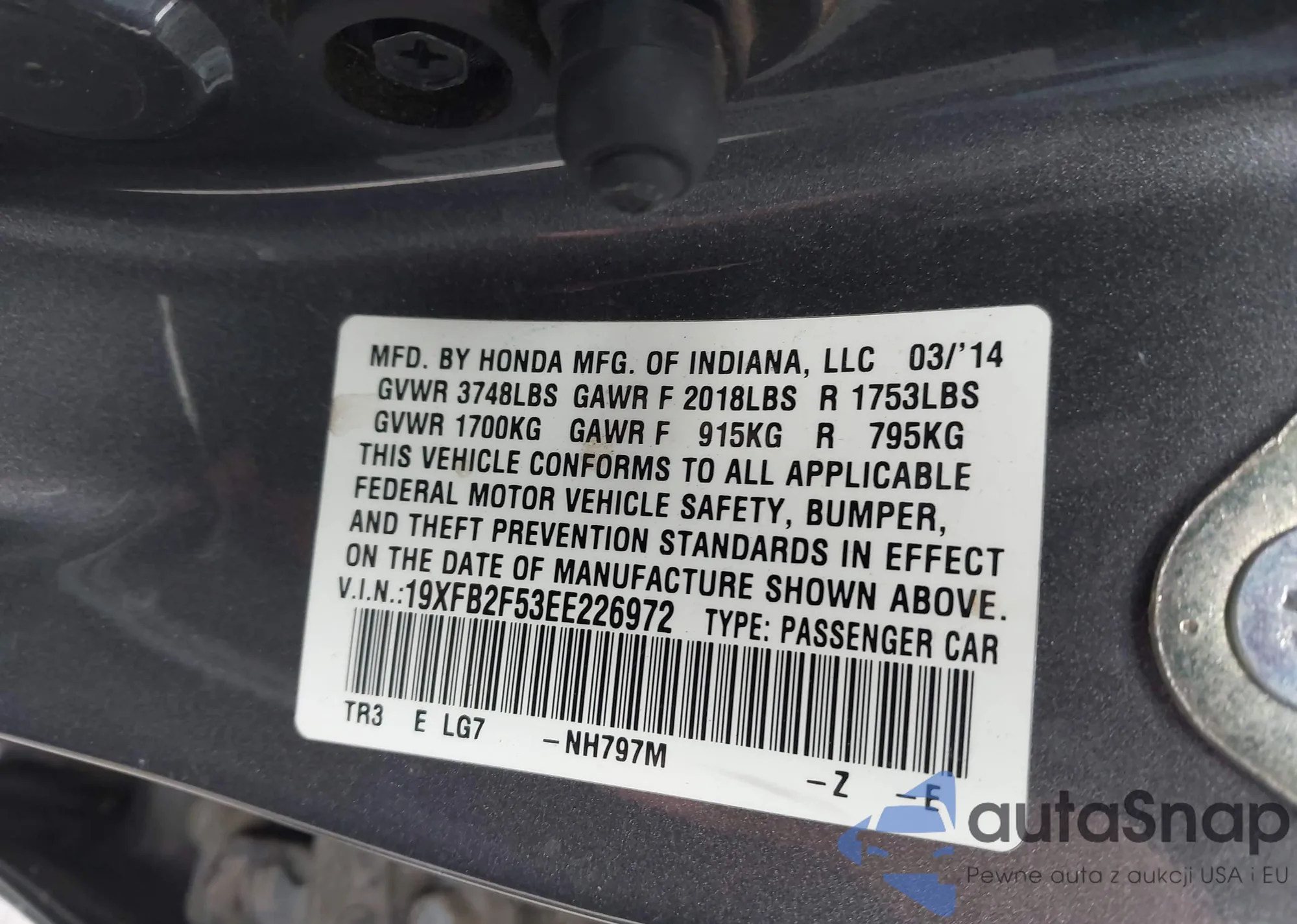 • VIN 19XFB2F53EE226972
