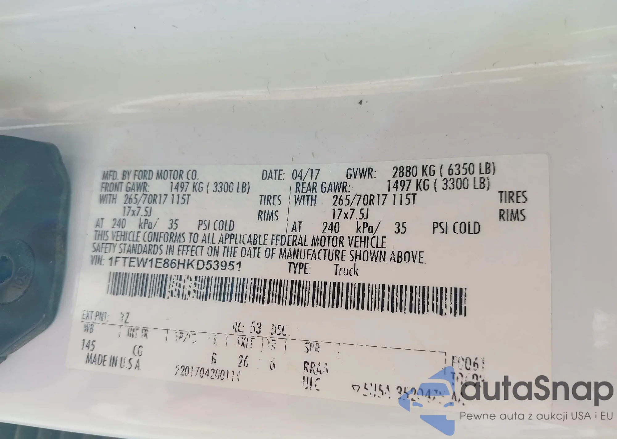 • VIN 1FTEW1E86HKD53951