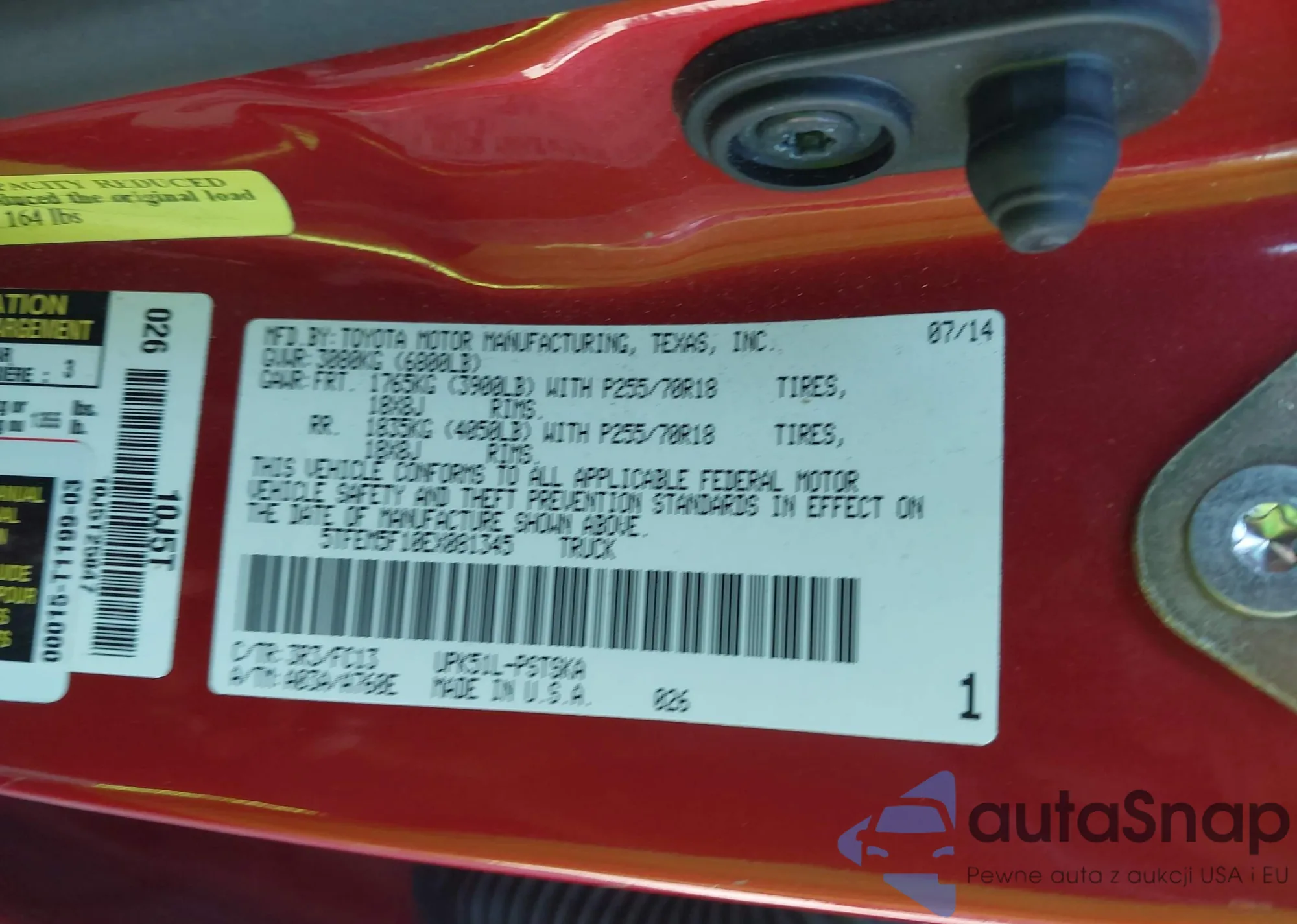 2014 Toyota Tundra Sr5 4.6L V8 z USA, uszkodzony, nr VIN 5TFEM5F10EX081345