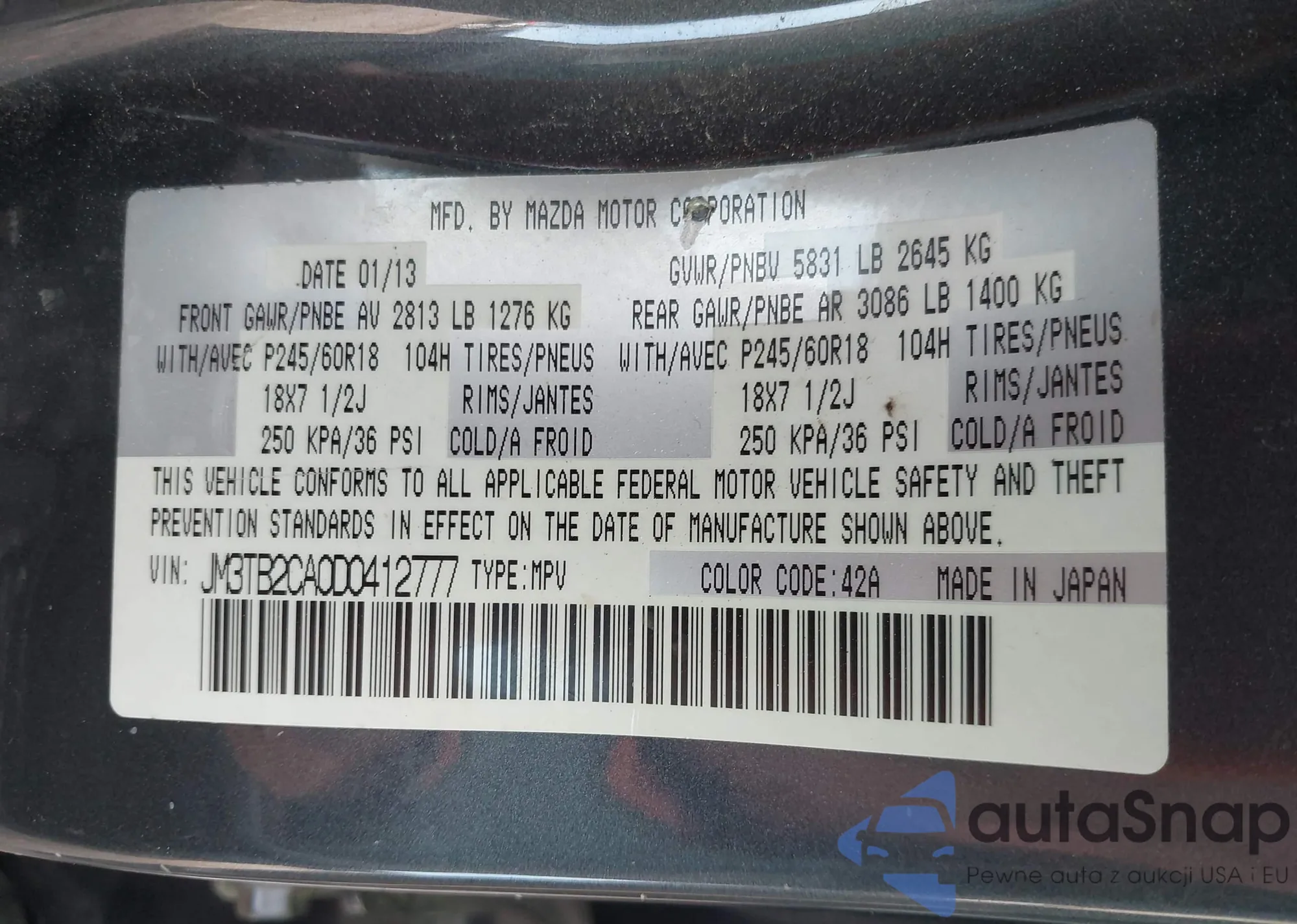 • VIN JM3TB2CA0D0412777