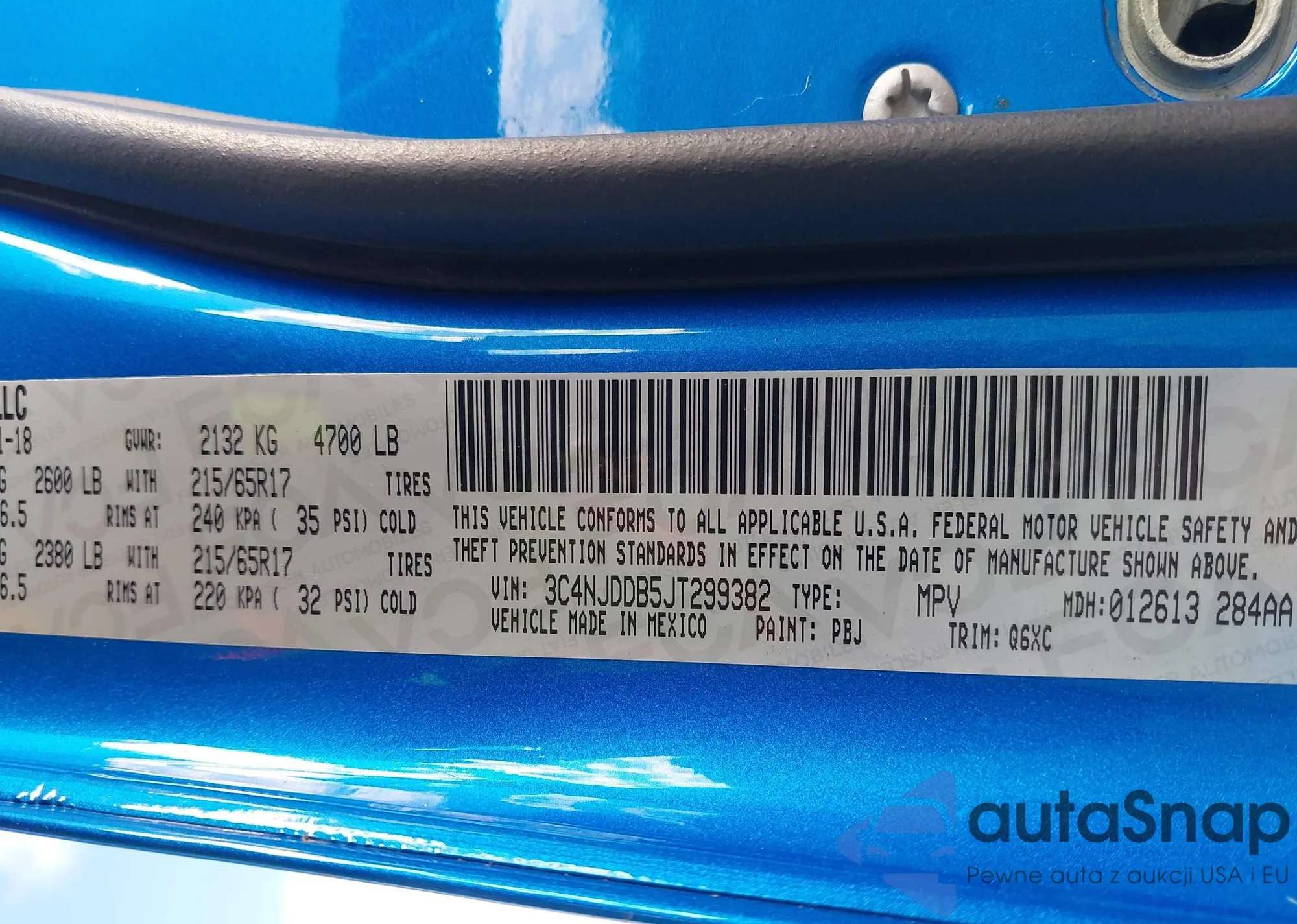 • VIN 3C4NJDDB5JT299382
