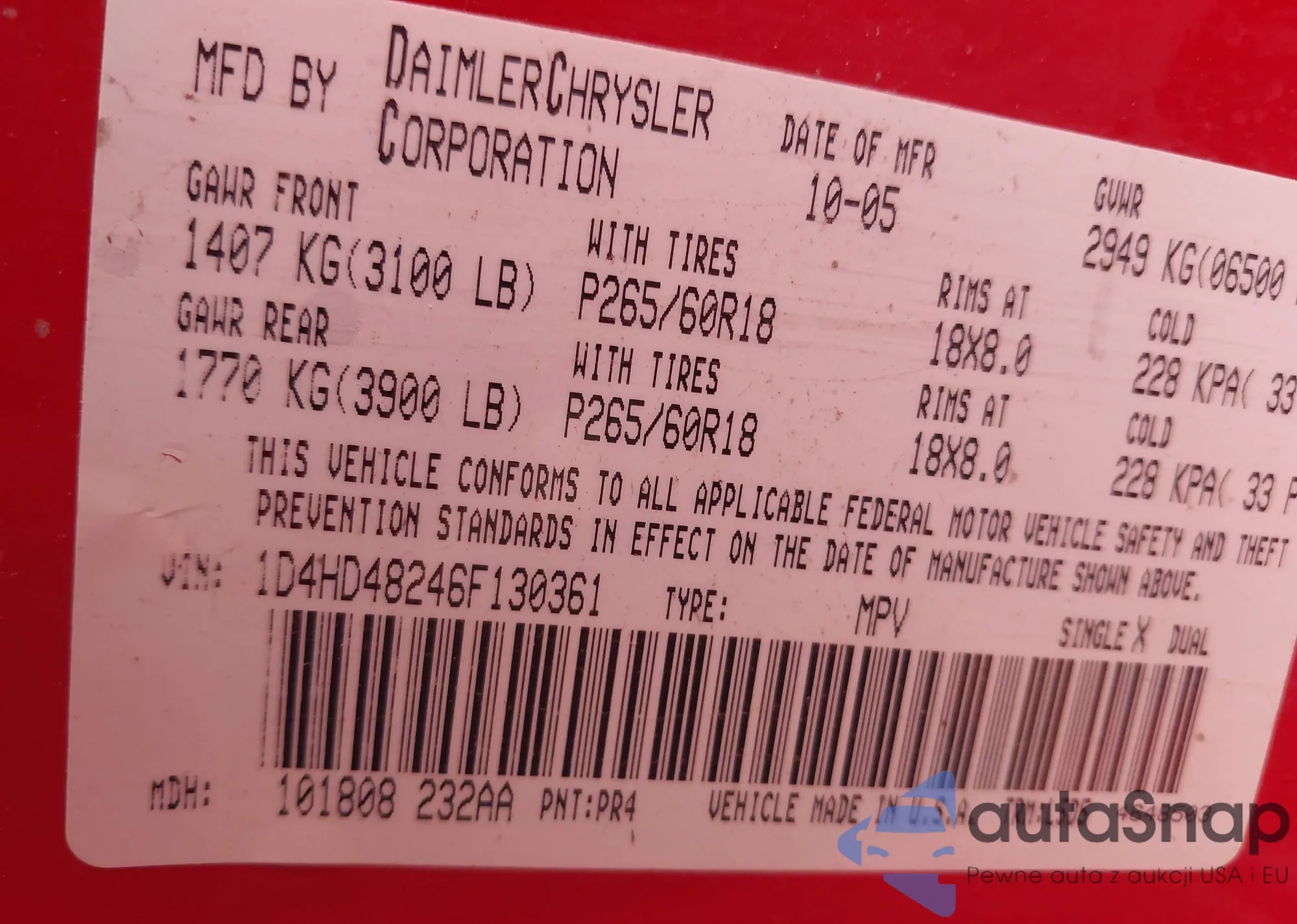 • VIN 1D4HD48246F130361