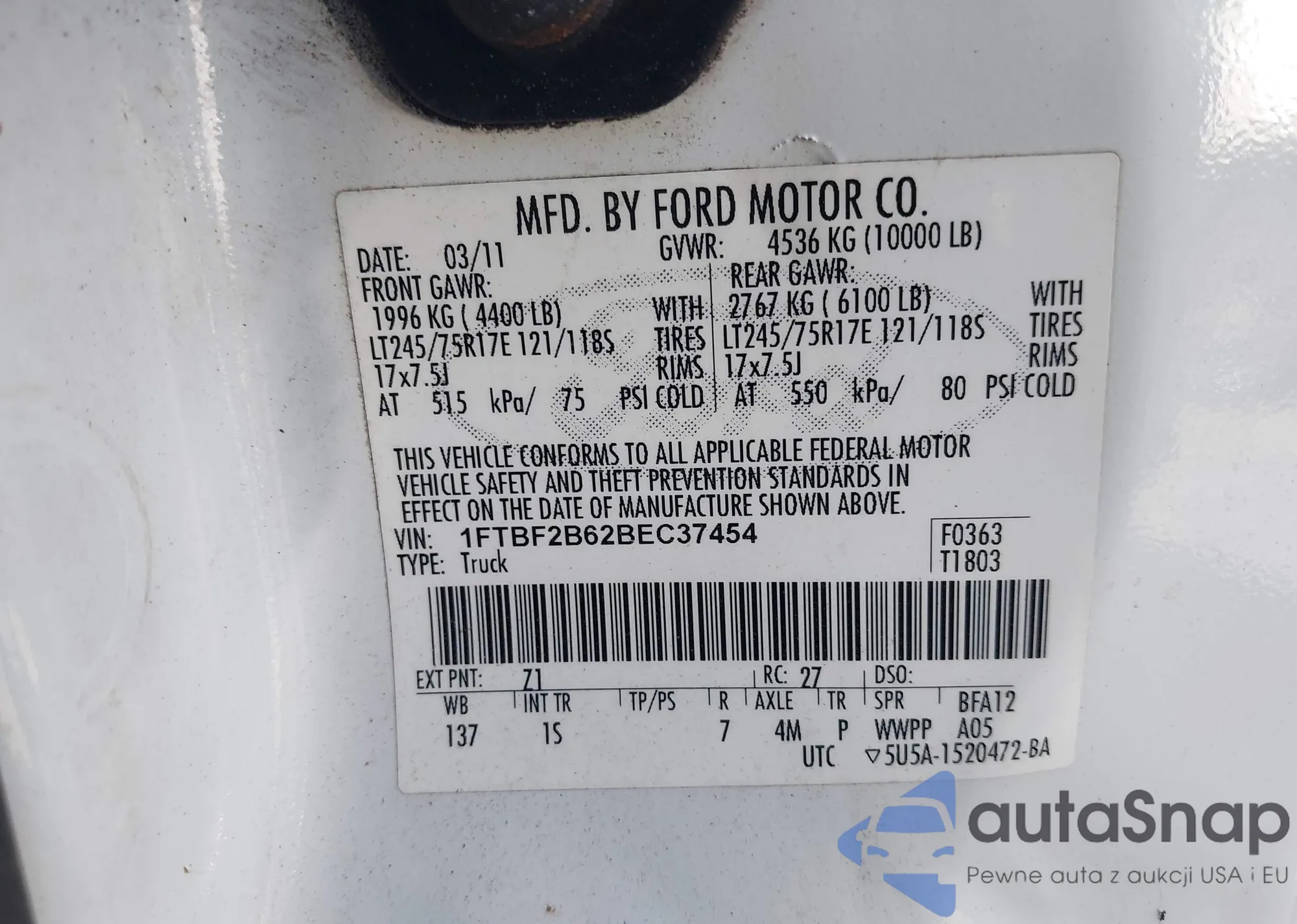 • VIN 1FTBF2B62BEC37454