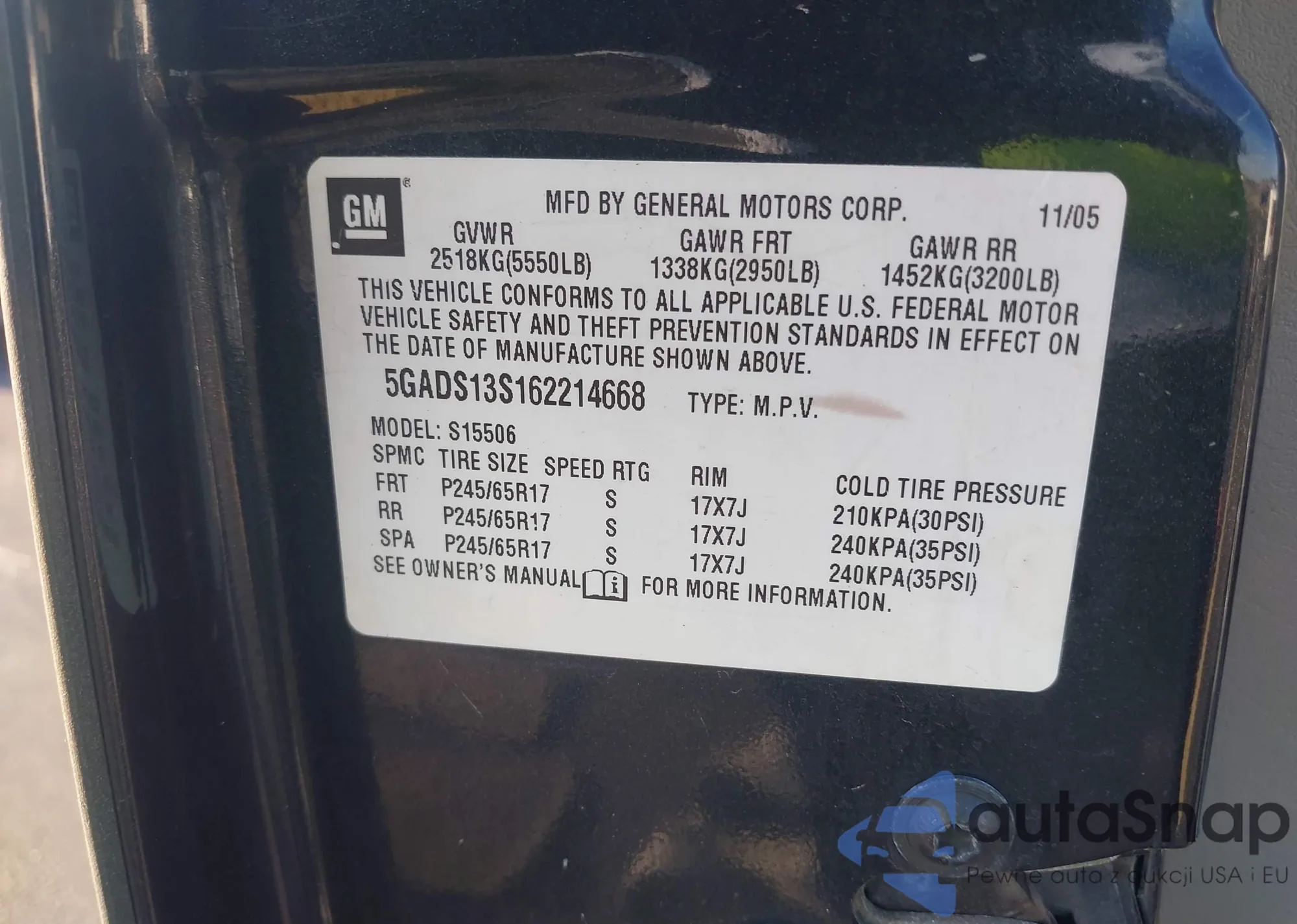 LOT: 43837810 VIN: 5GADS13S162214668