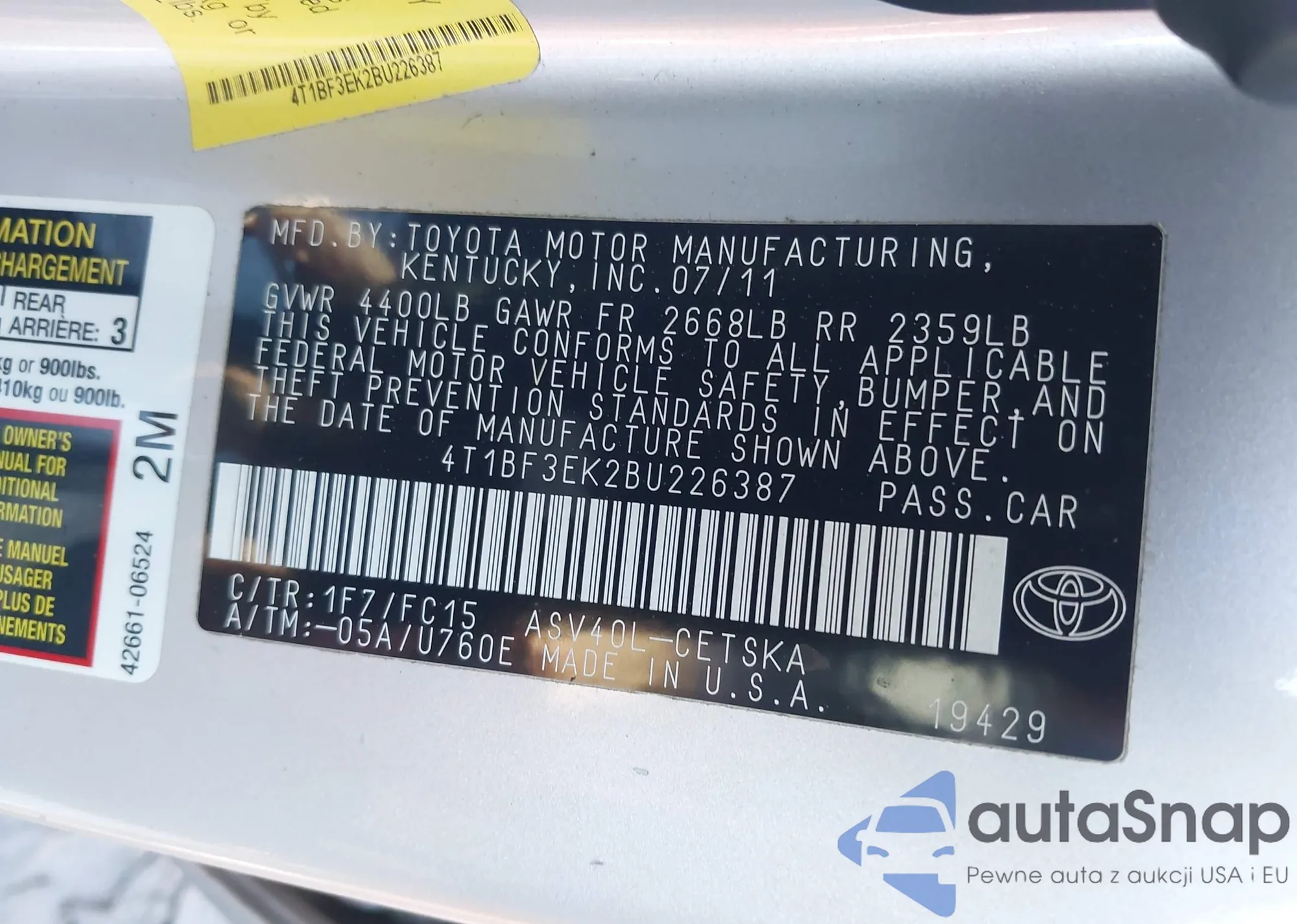 LOT: 43773603 VIN: JTDKARFU4J3546479