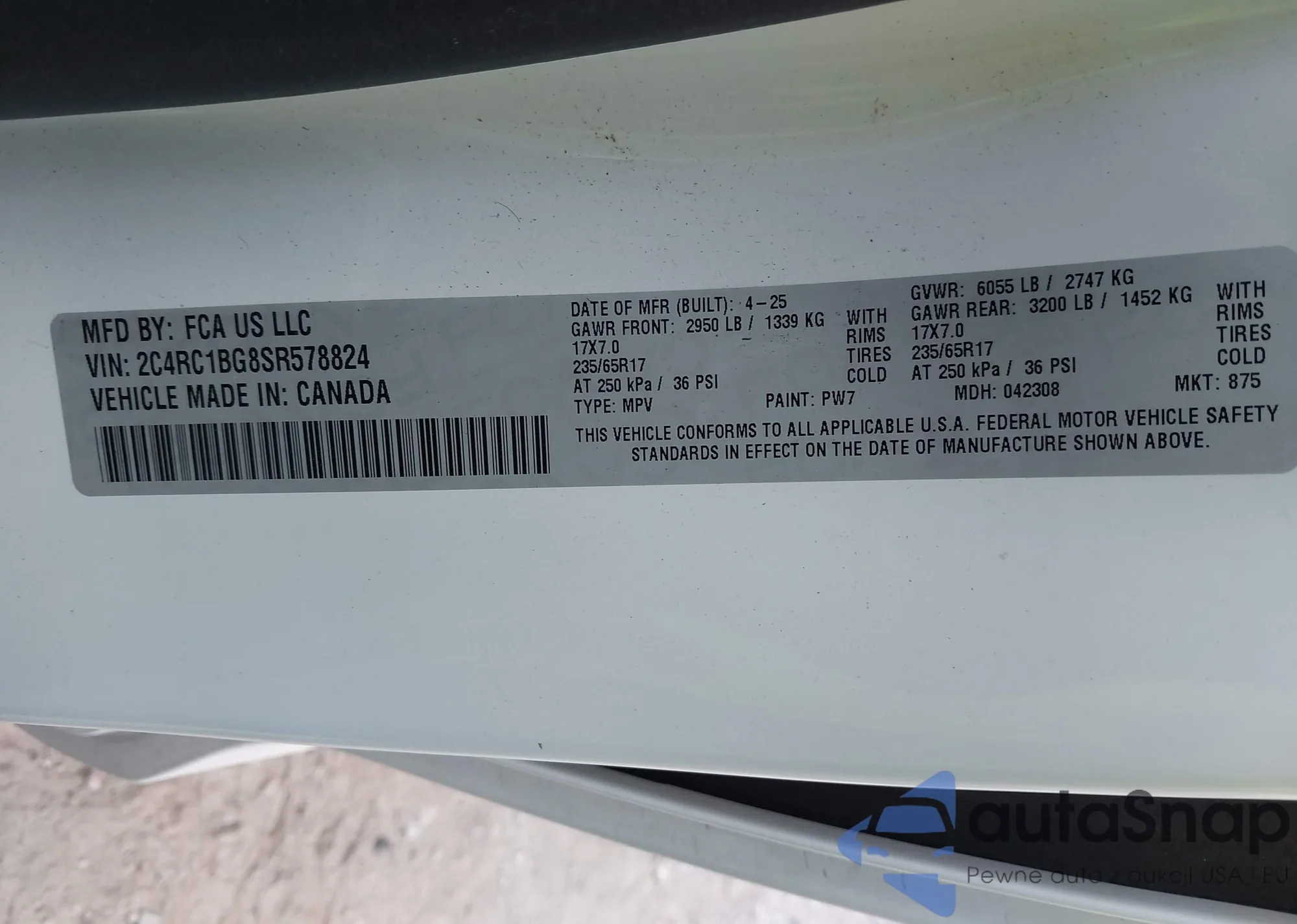 • VIN 2C4RC1BG8SR578824