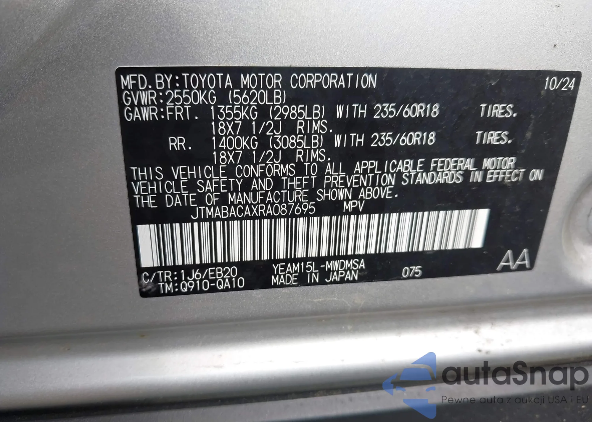 • VIN 1N4BL4CV6KC121444