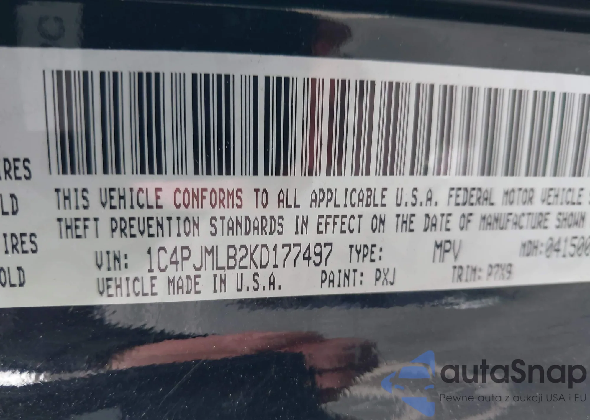 • VIN 1C4PJMLB2KD177497