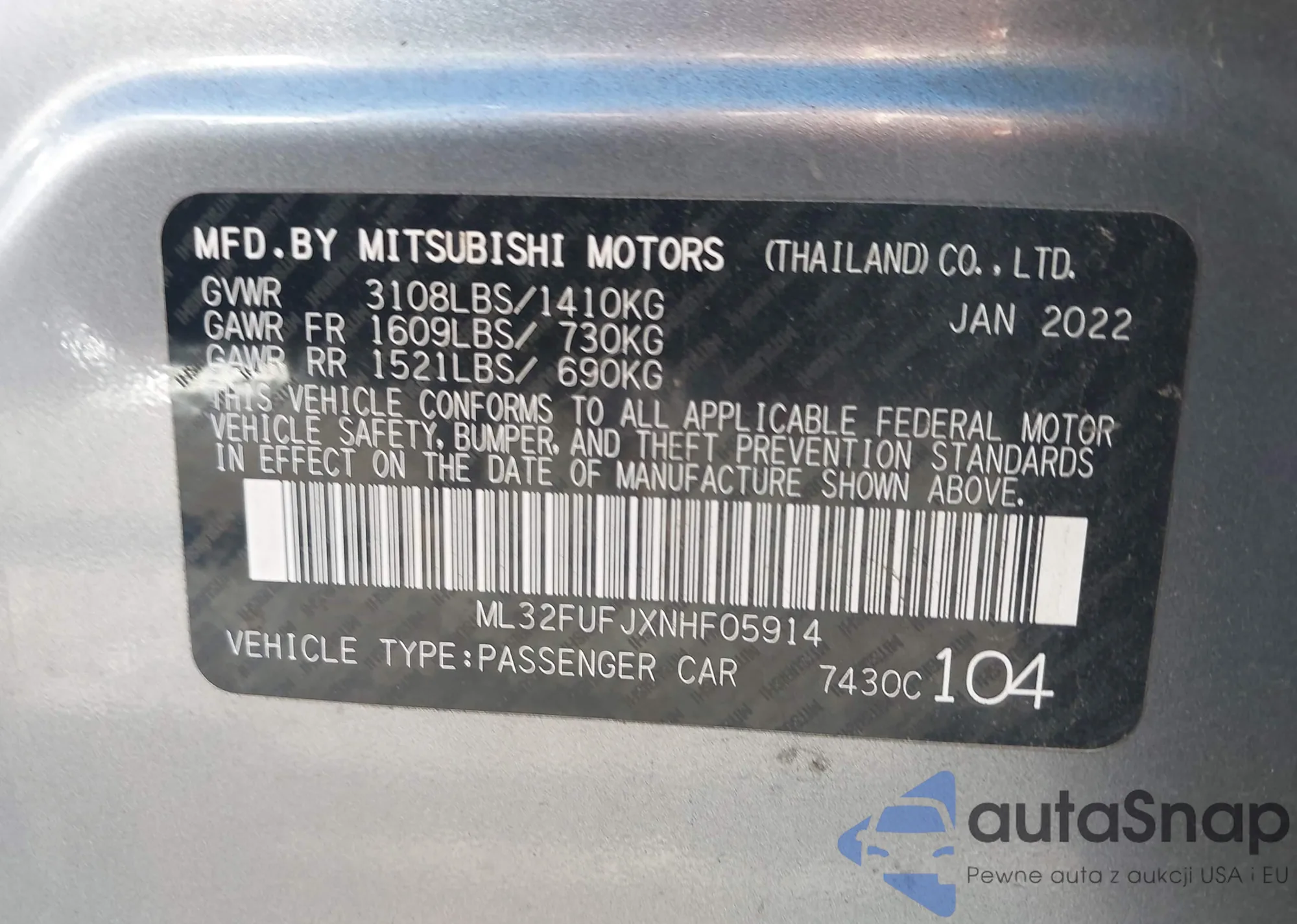 LOT: 43537694 VIN: ML32FUFJXNHF05914