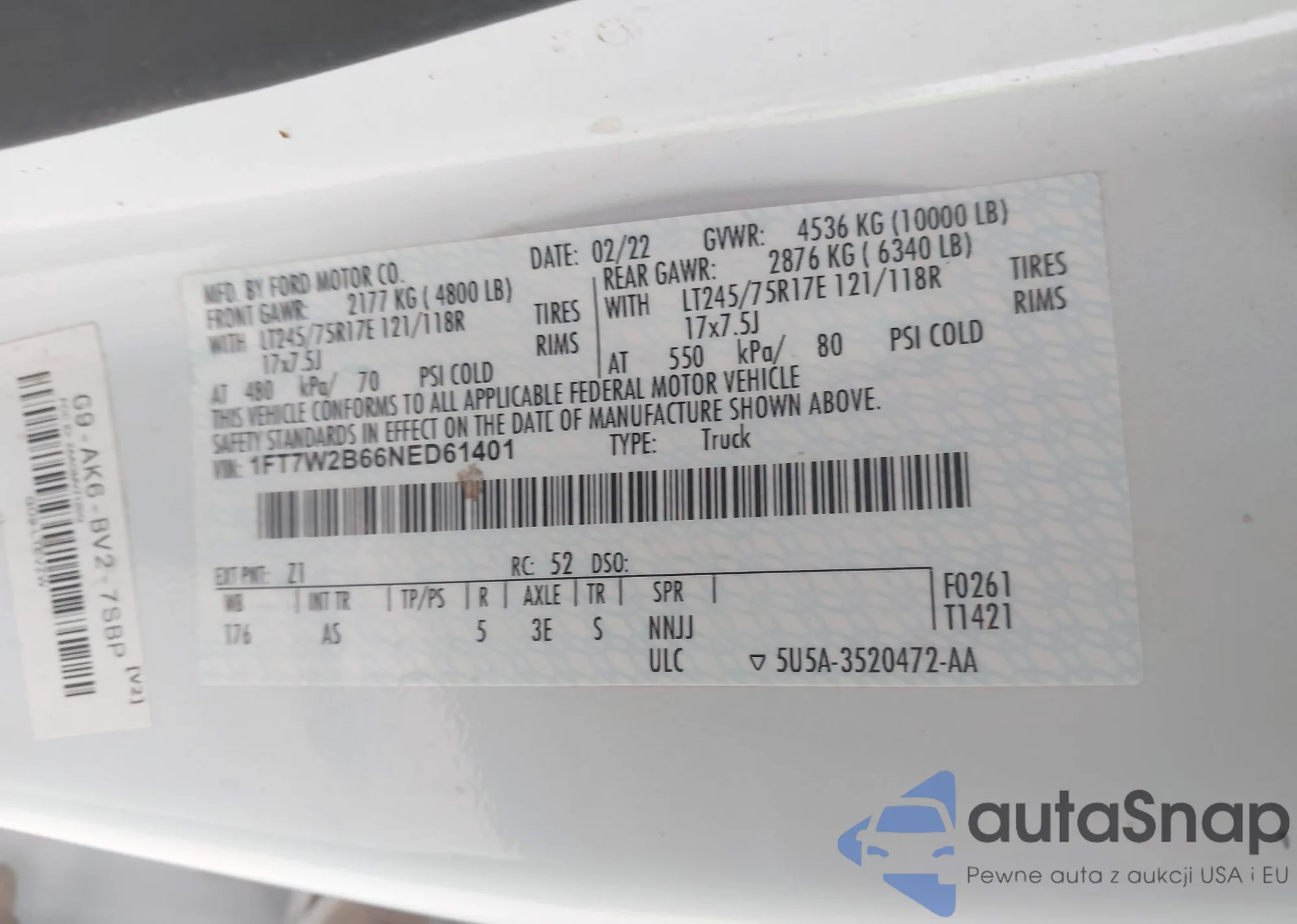 LOT: 43822768 VIN: 1FT7W2B66NED61401