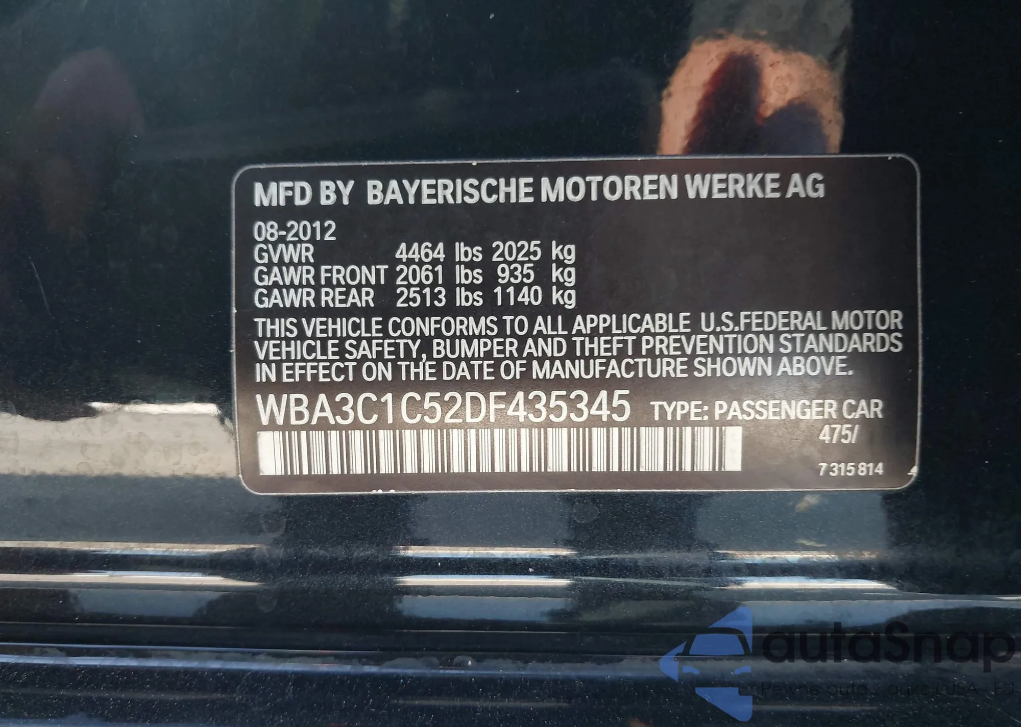 LOT: 43836345 VIN: WBA3C1C52DF435345