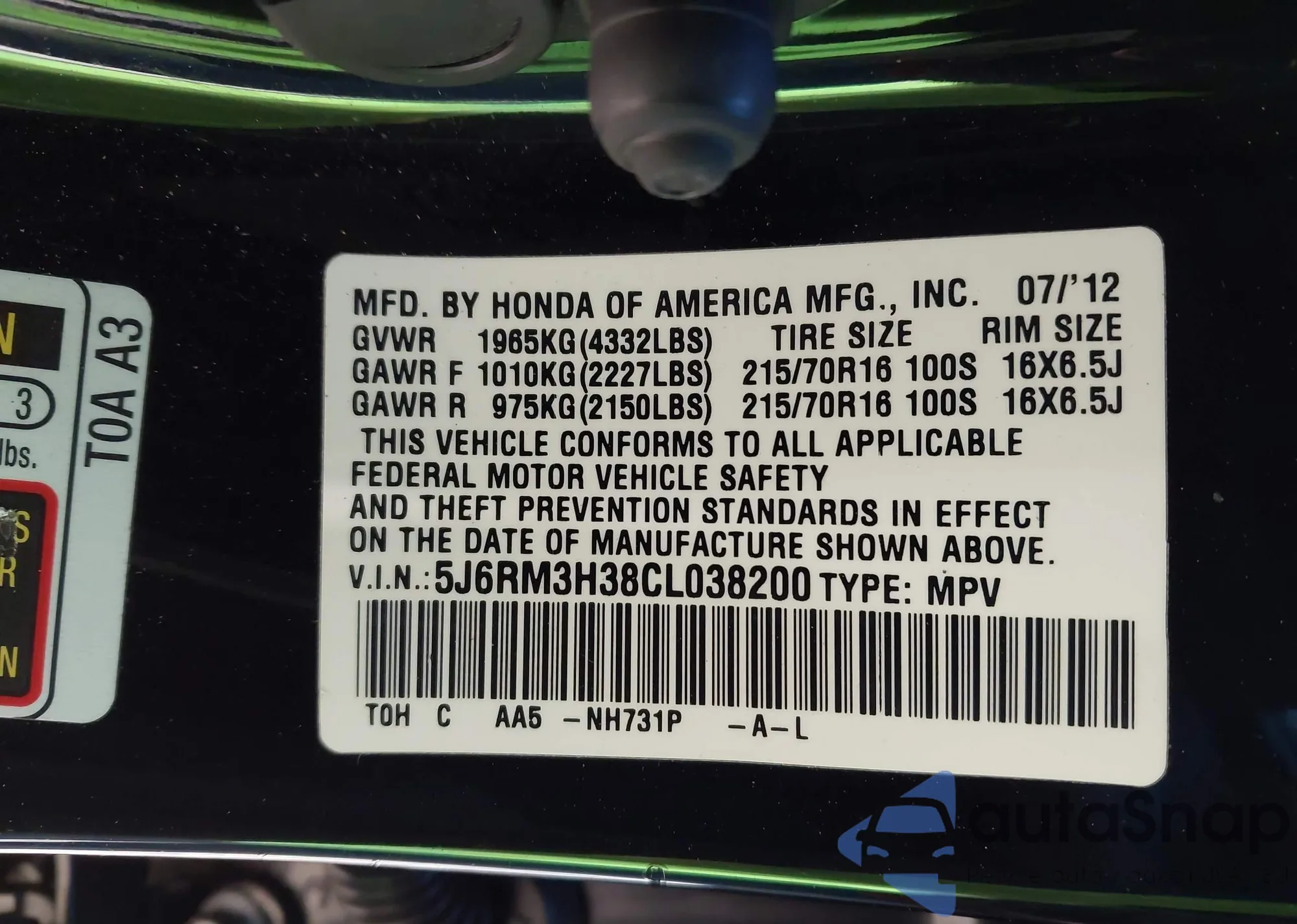 • VIN 2T3W1RFV4MC138545