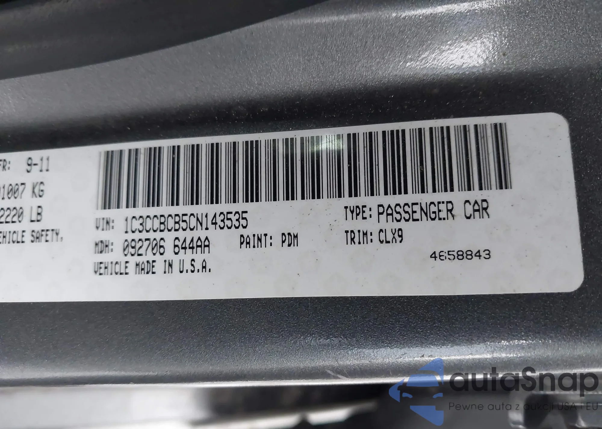 LOT: 43902549 VIN: 1C3CCBCB5CN143535