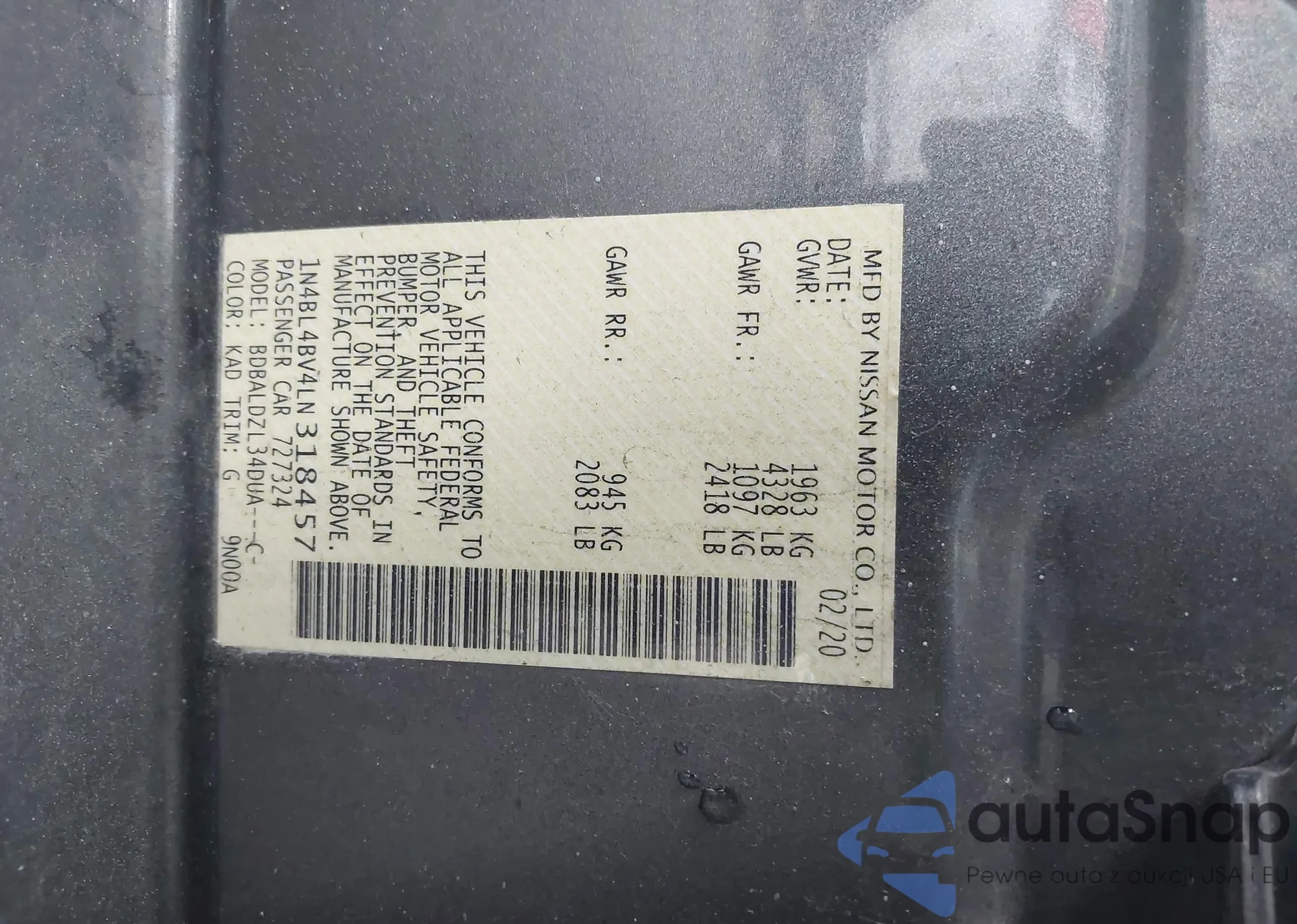 LOT: 42933253 VIN: 1N4BL4BV4LN318457