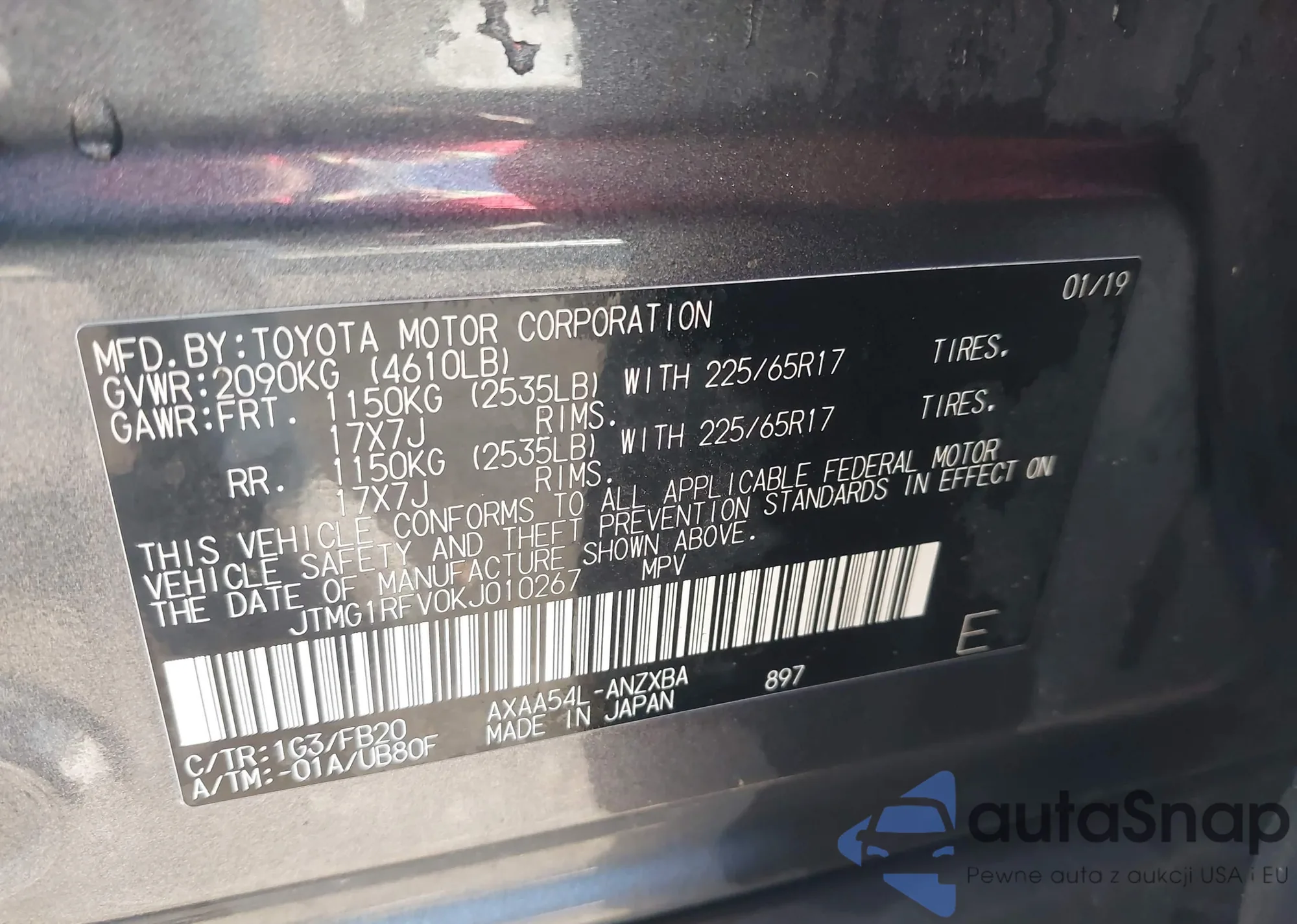 • VIN JTMG1RFV0KJ010267