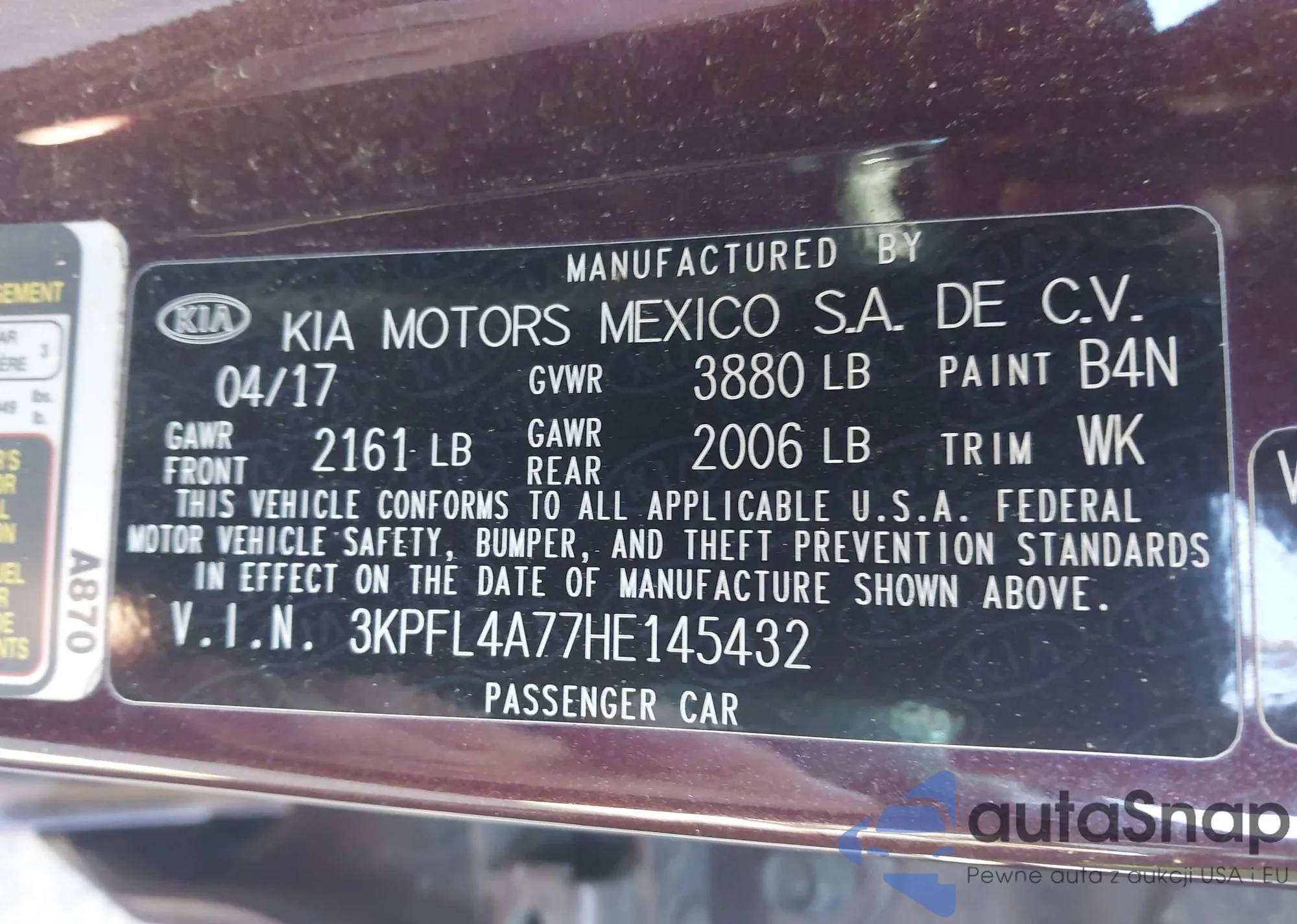 • VIN 1N4BL4BV4LN318457