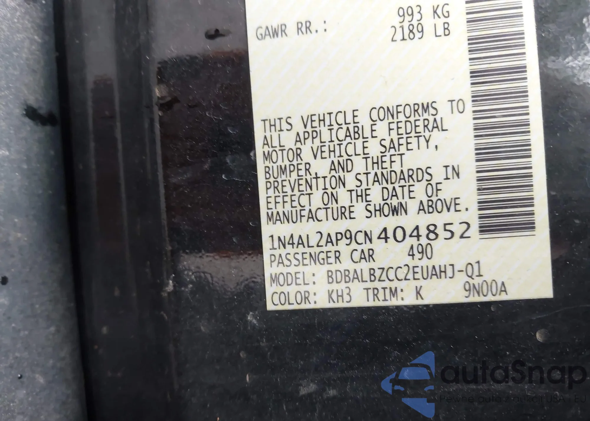 • VIN 3N1AB7AP0EY212450