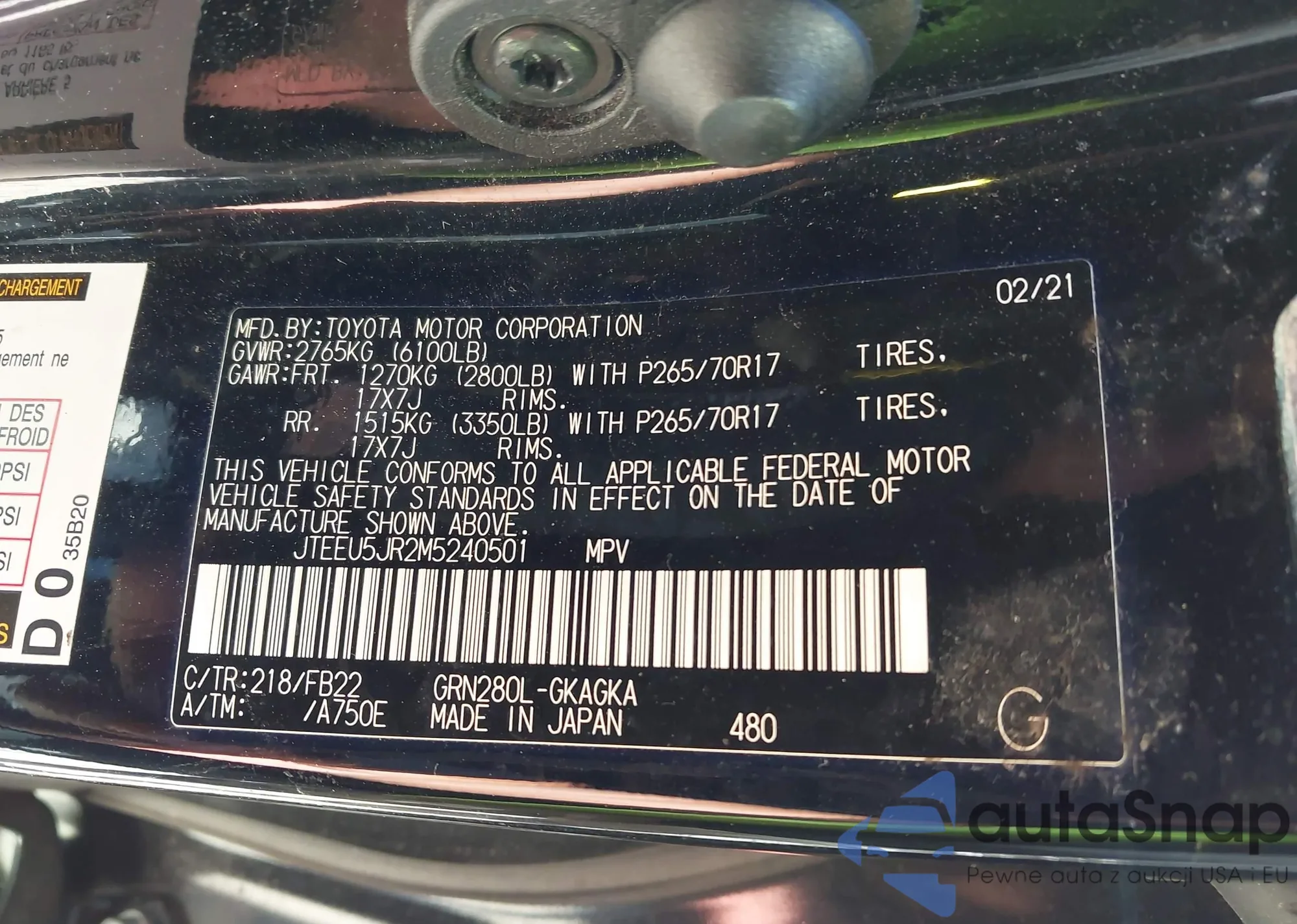 LOT: 43480408 VIN: JTEEU5JR2M5240501