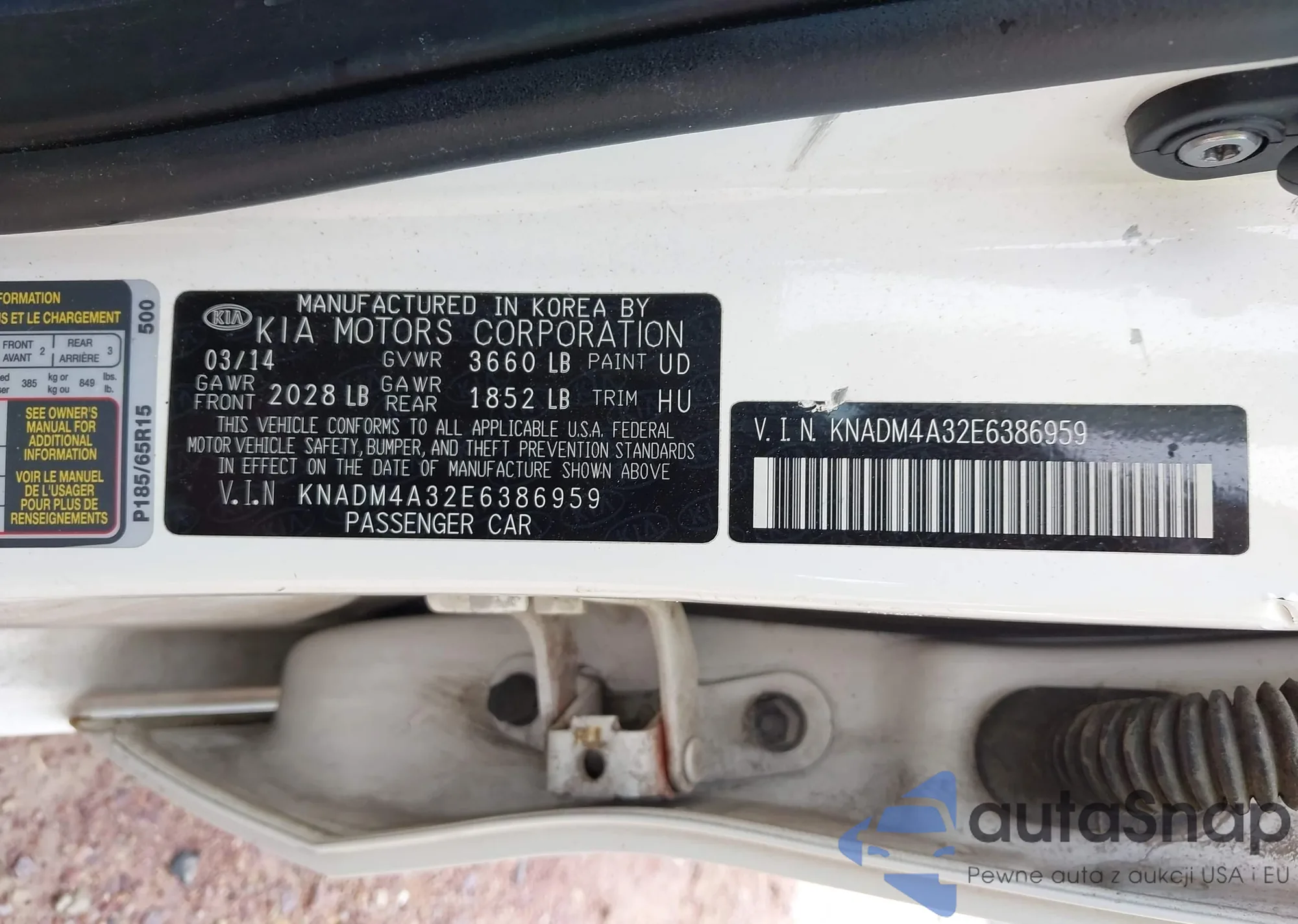 LOT: 43260506 VIN: KNADM4A32E6386959