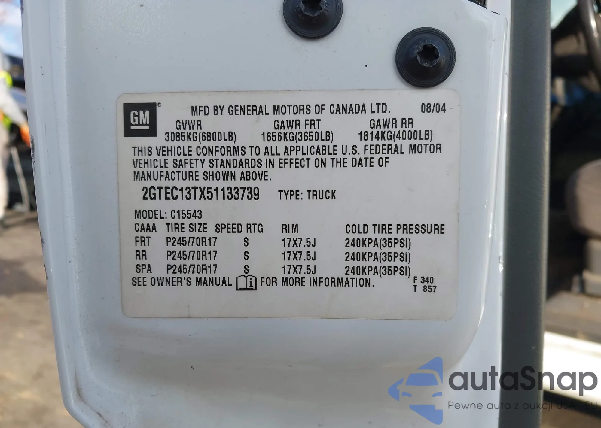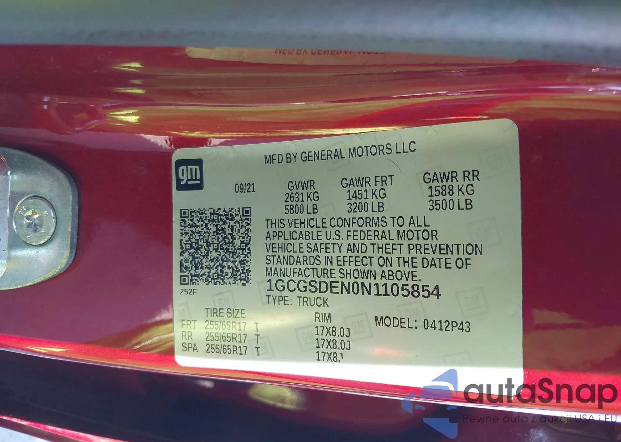 LOT: 43333662 VIN: 1GCGSDEN0N1105854