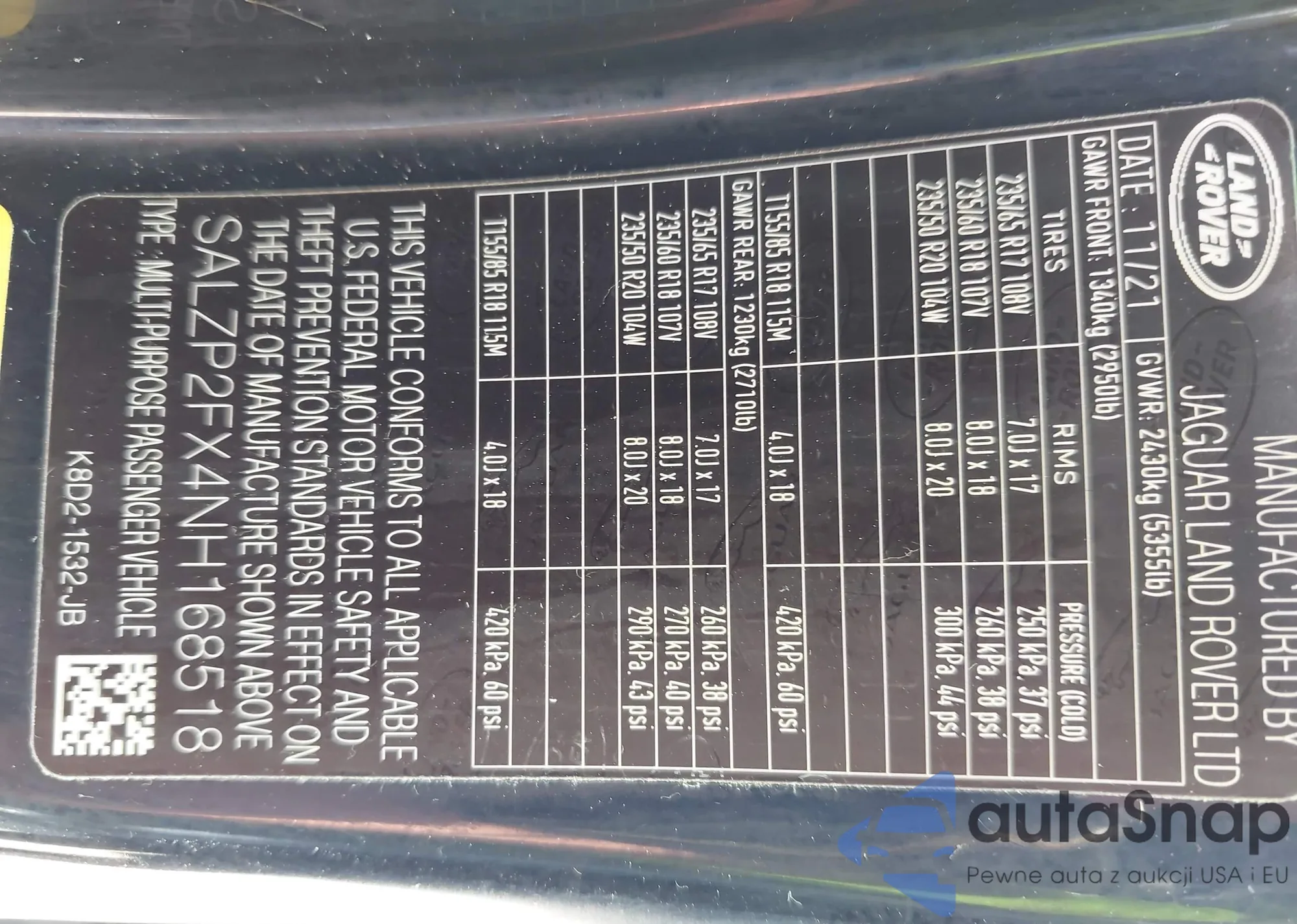 • VIN SALZP2FX4NH168518