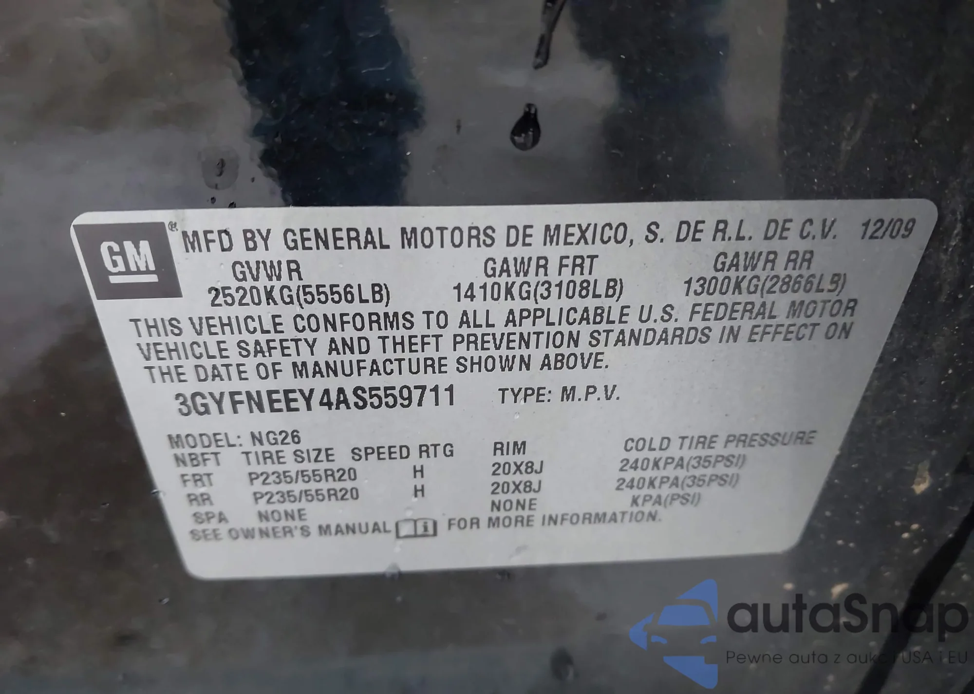LOT: 43527662 VIN: 1G1FY6S0XN4102952