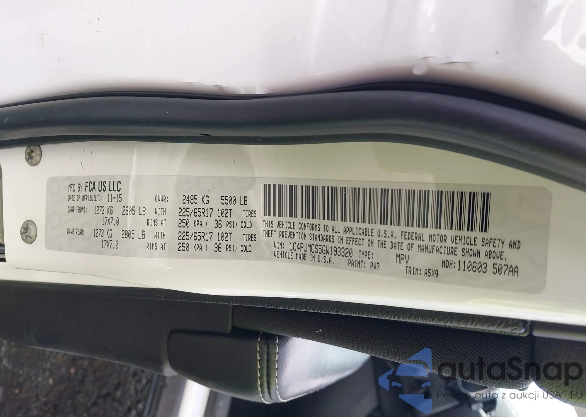 LOT: 43628904 VIN: 1C4PJMCS5GW193320