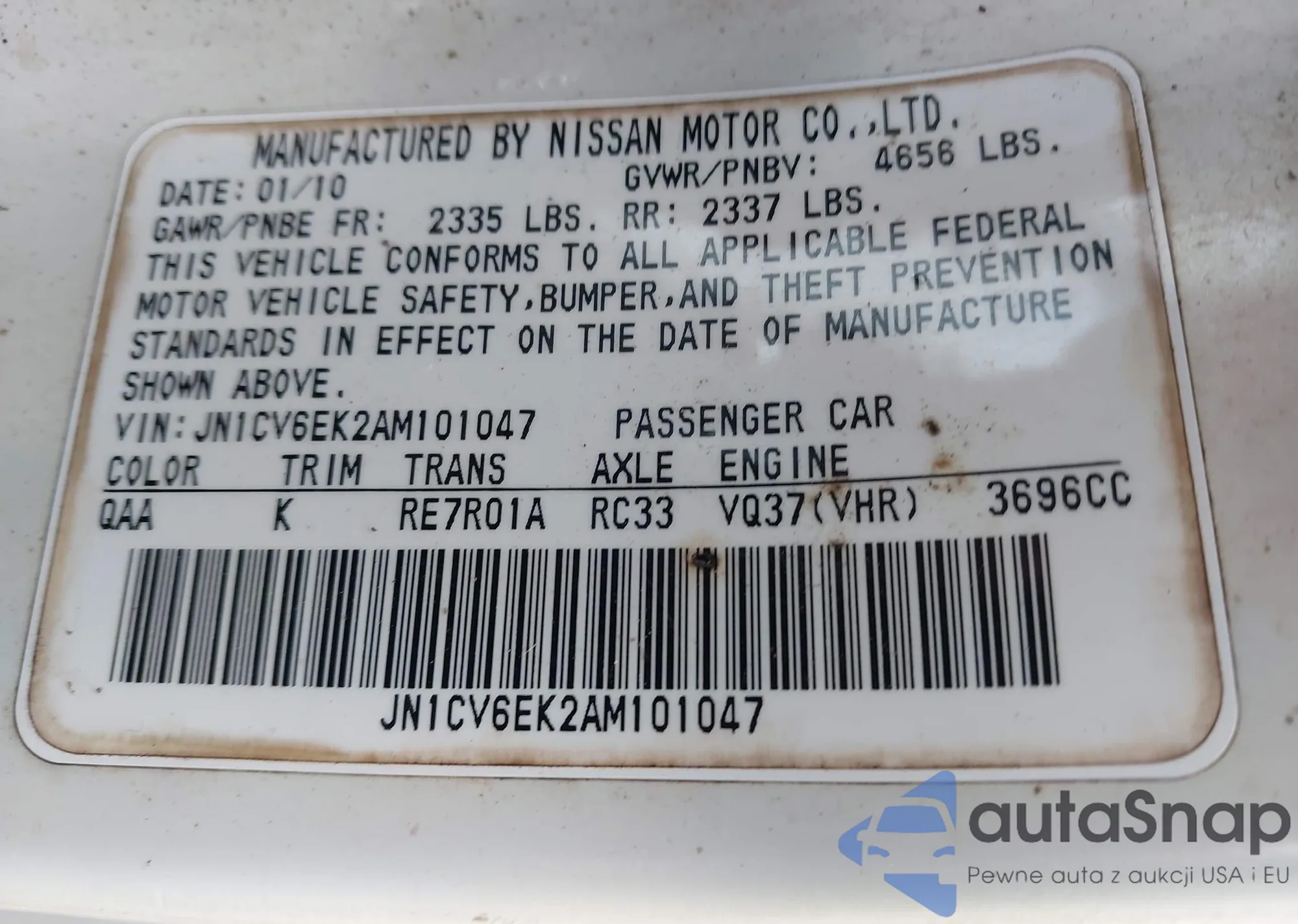 2010 Infiniti G37 Journey z USA, uszkodzony, nr VIN JN1CV6EK2AM101047