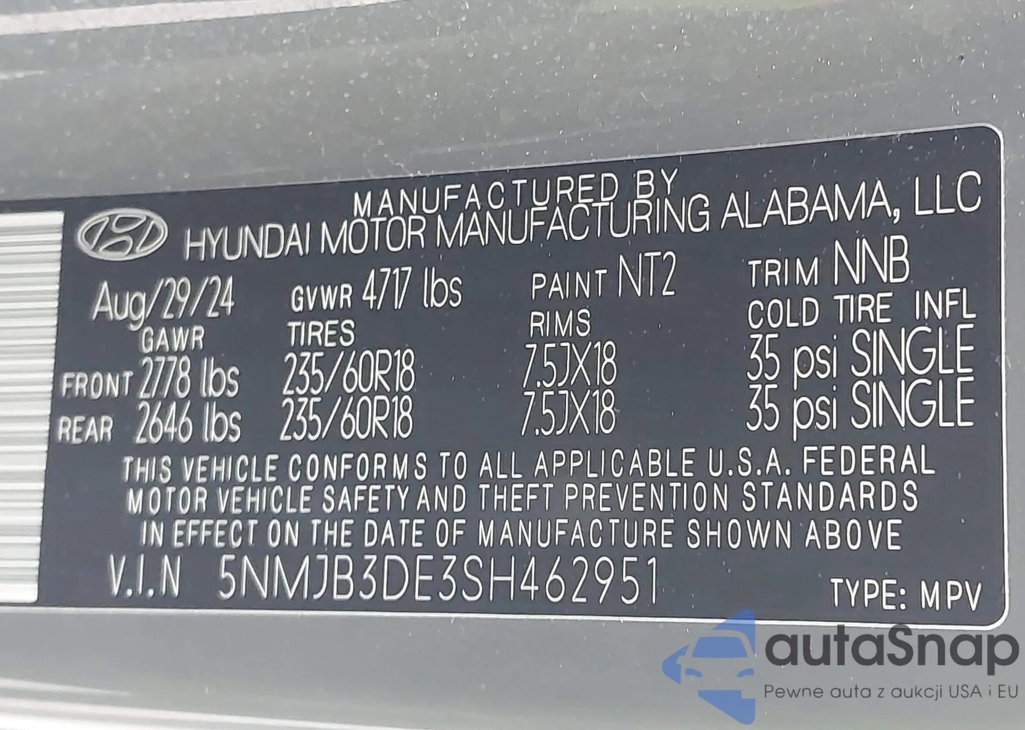 LOT: 43934804 VIN: 5NMJB3DE3SH462951