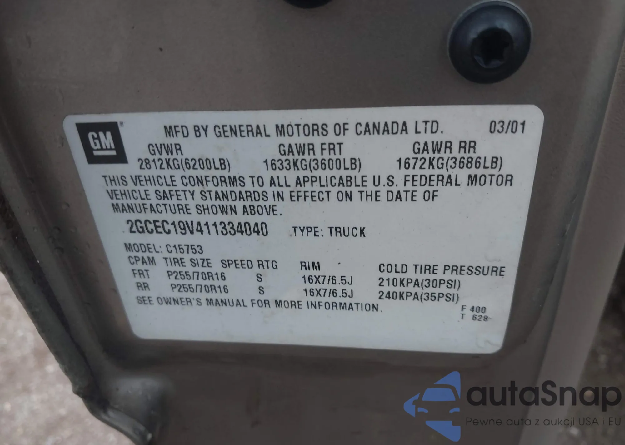 • VIN 2GCEC19V411334040