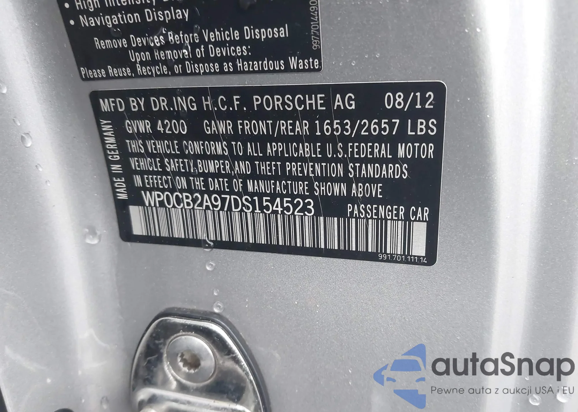 LOT: 43860288 VIN: WP0CB2A97DS154523