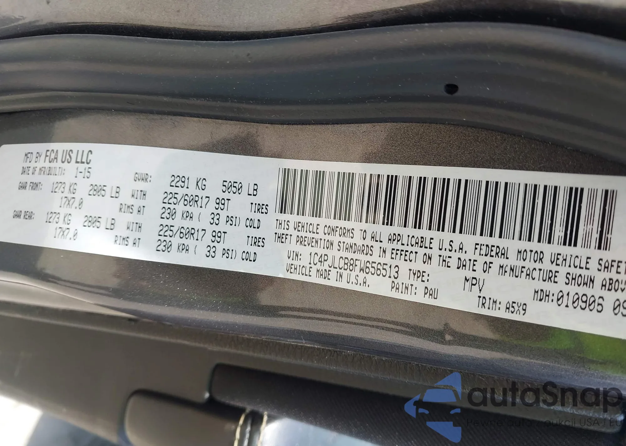 LOT: 42324338 VIN: 1C4PJLCB8FW656513
