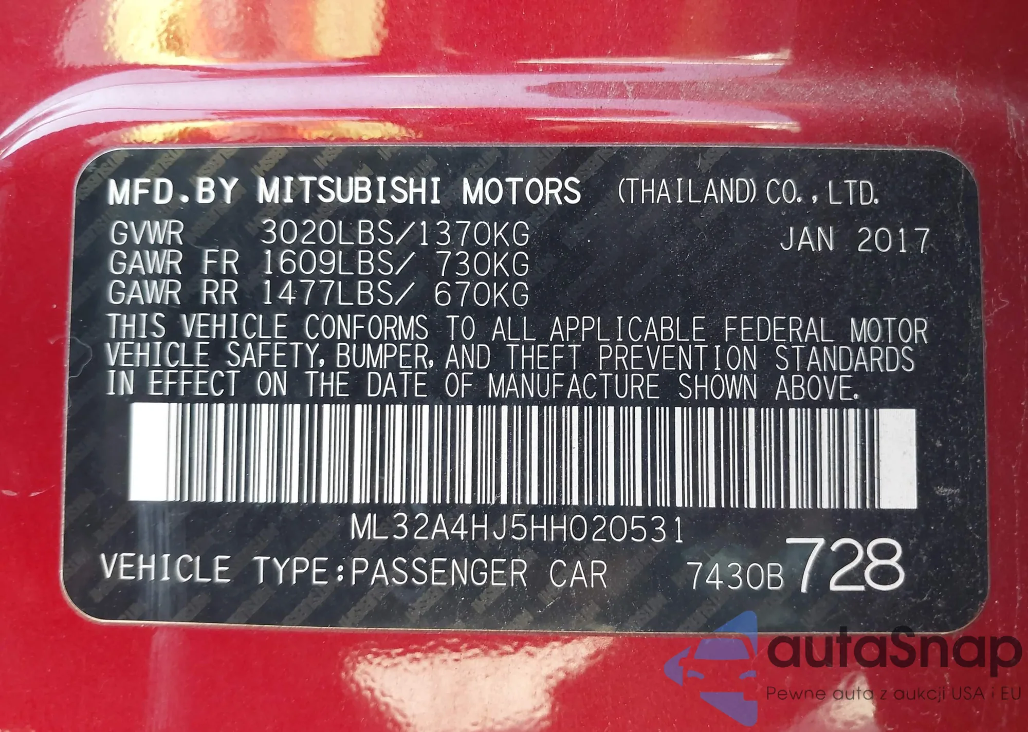 LOT: 43354492 VIN: JA4ARUAU7PU003011