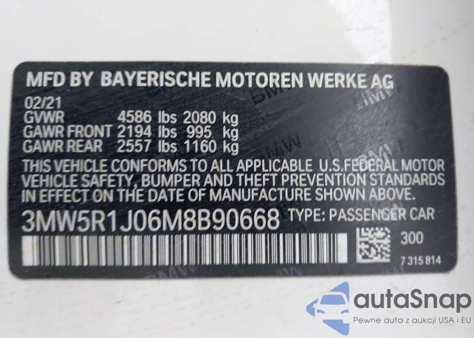 • VIN 3MW5R1J06M8B90668