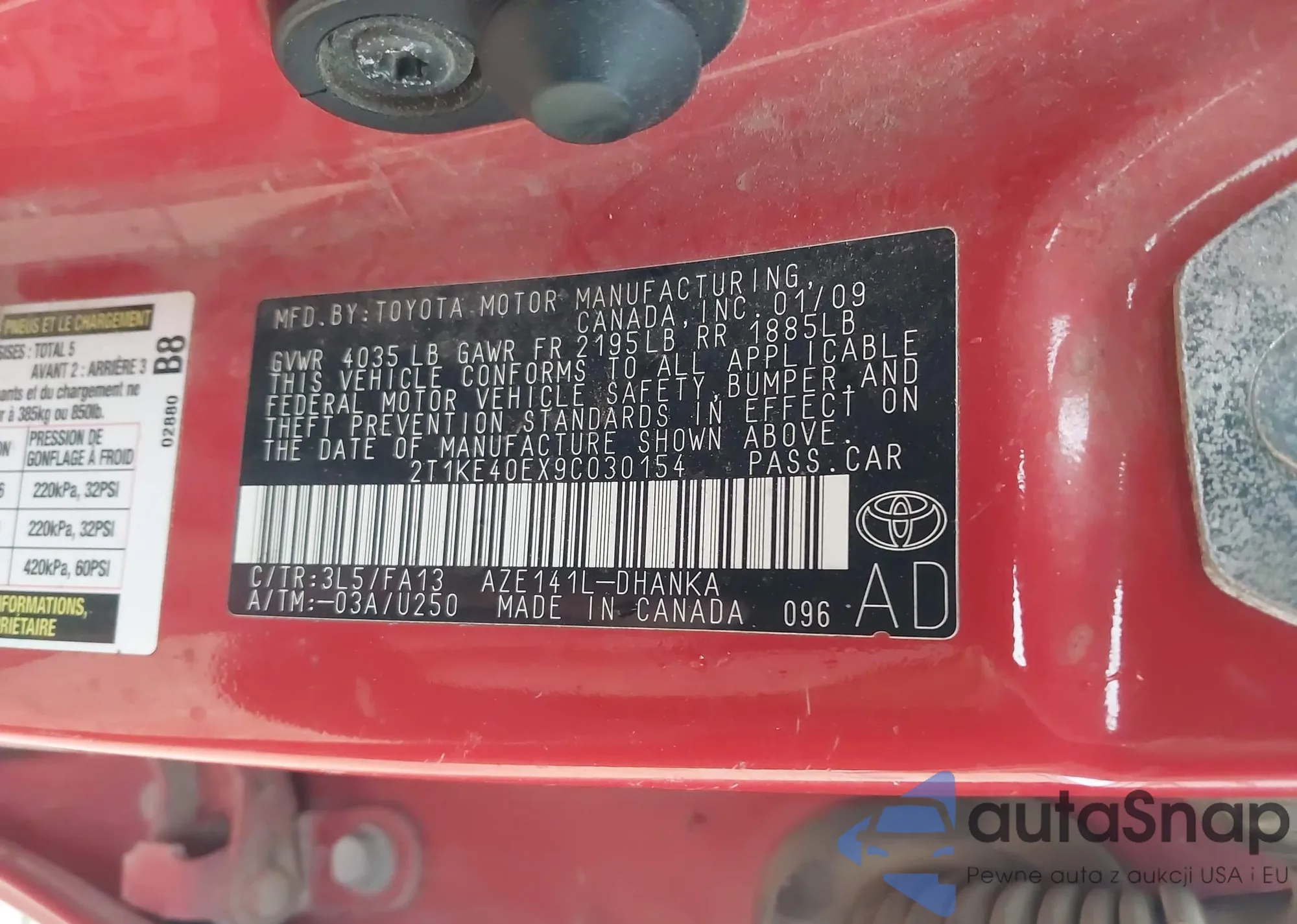 LOT: 43804234 VIN: 2T1KE40EX9C030154