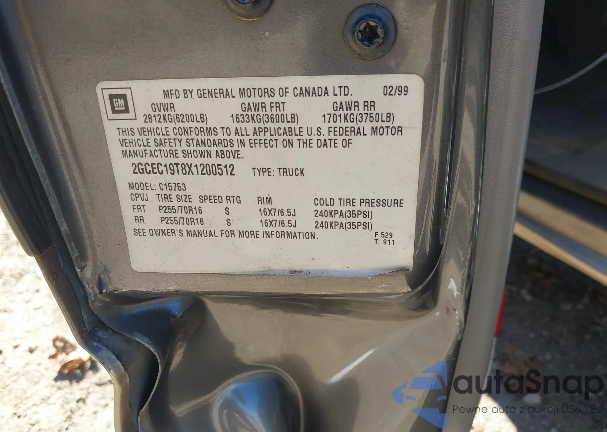 LOT: 43437092 VIN: 2GCEC19T8X1200512