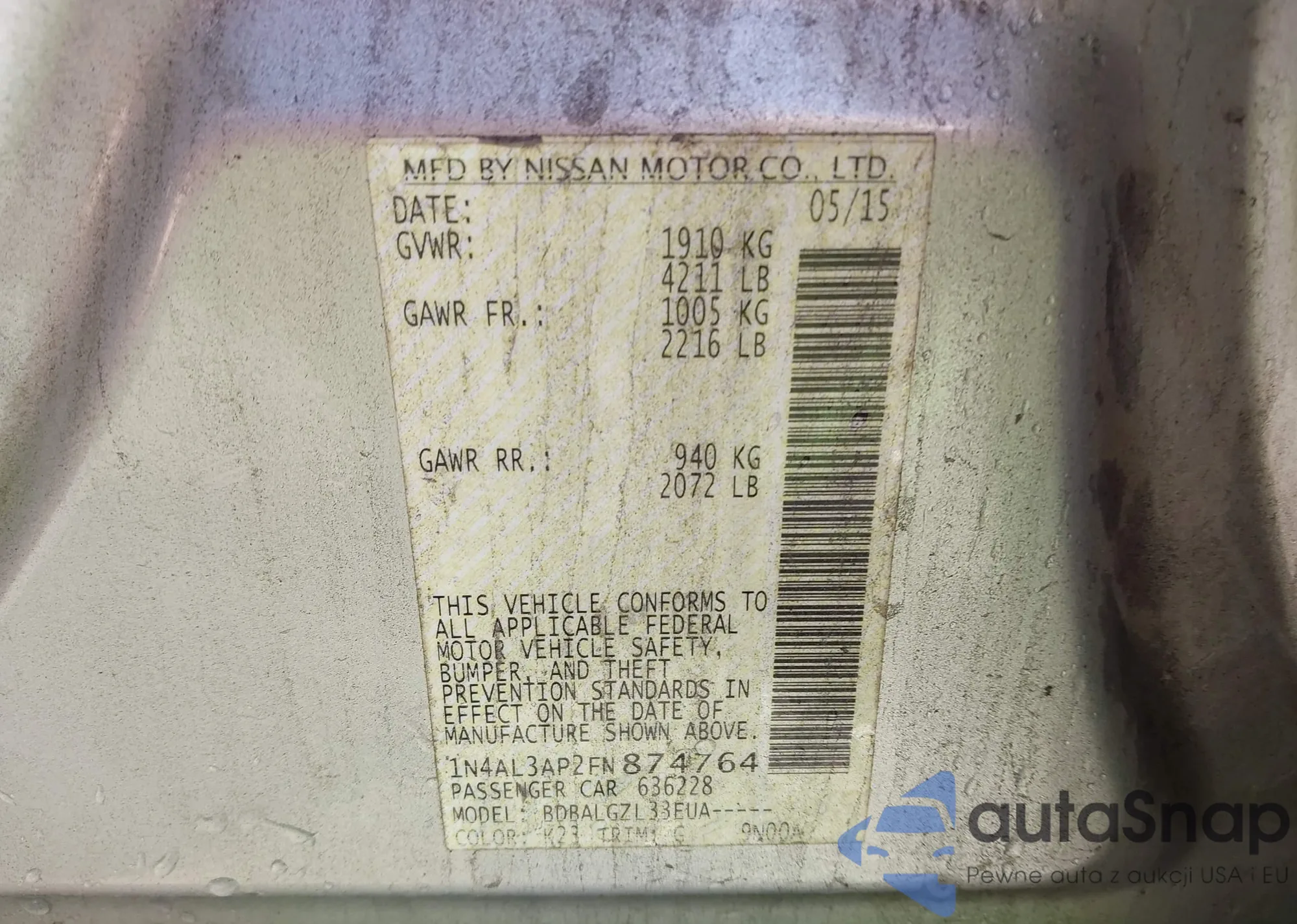 LOT: 43447342 VIN: WA1EECF31P1118485