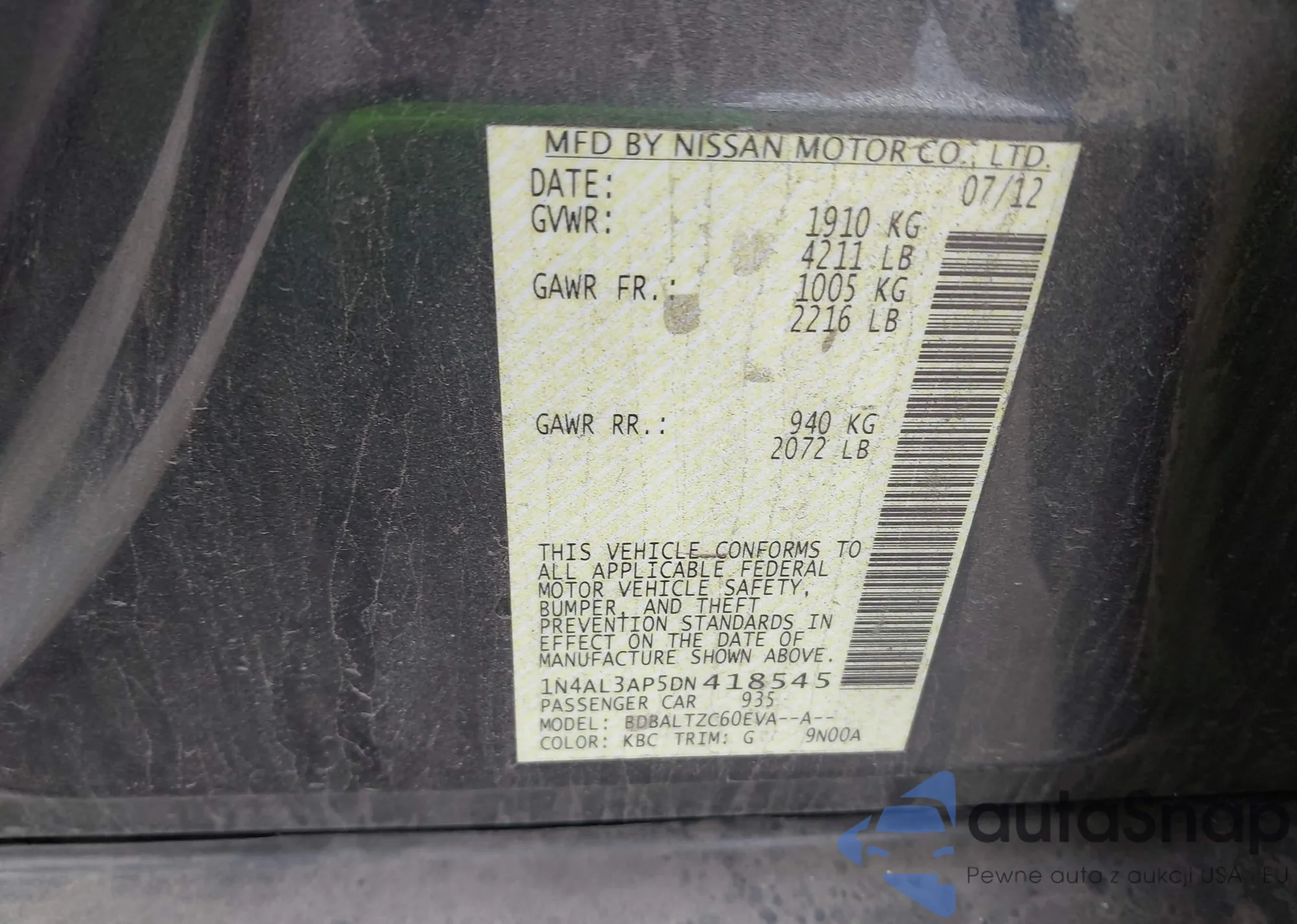 • VIN 1N4AL3AP5DN418545