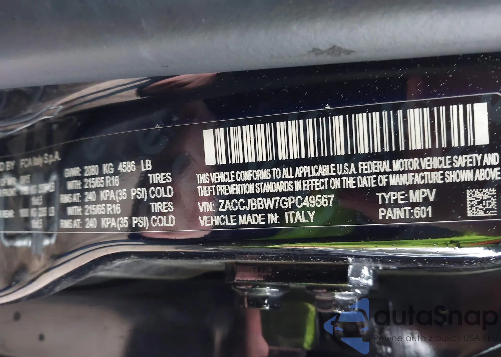 LOT: 43730378 VIN: ZACCJBBW7GPC49567