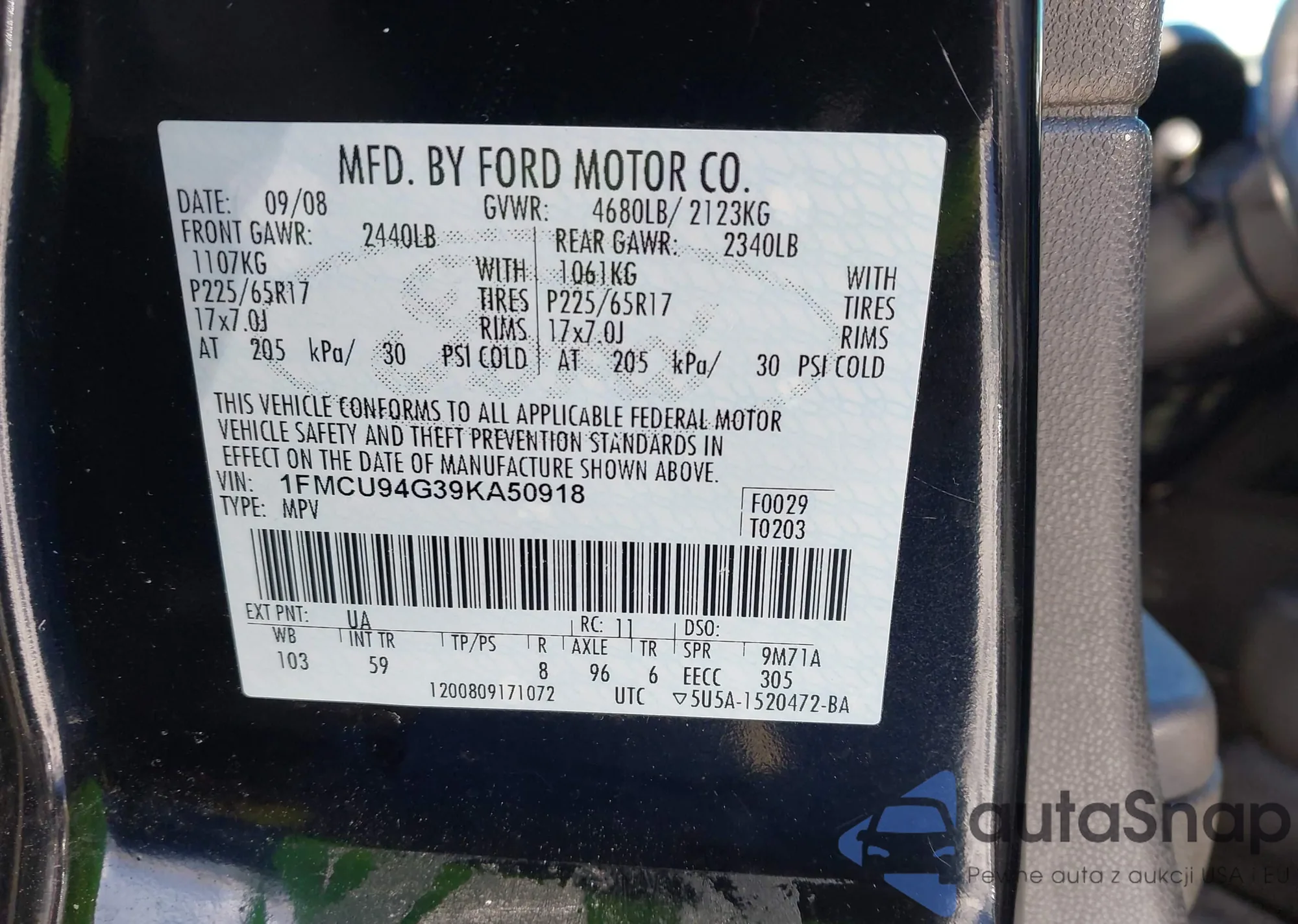 • VIN 1FMCU94G39KA50918
